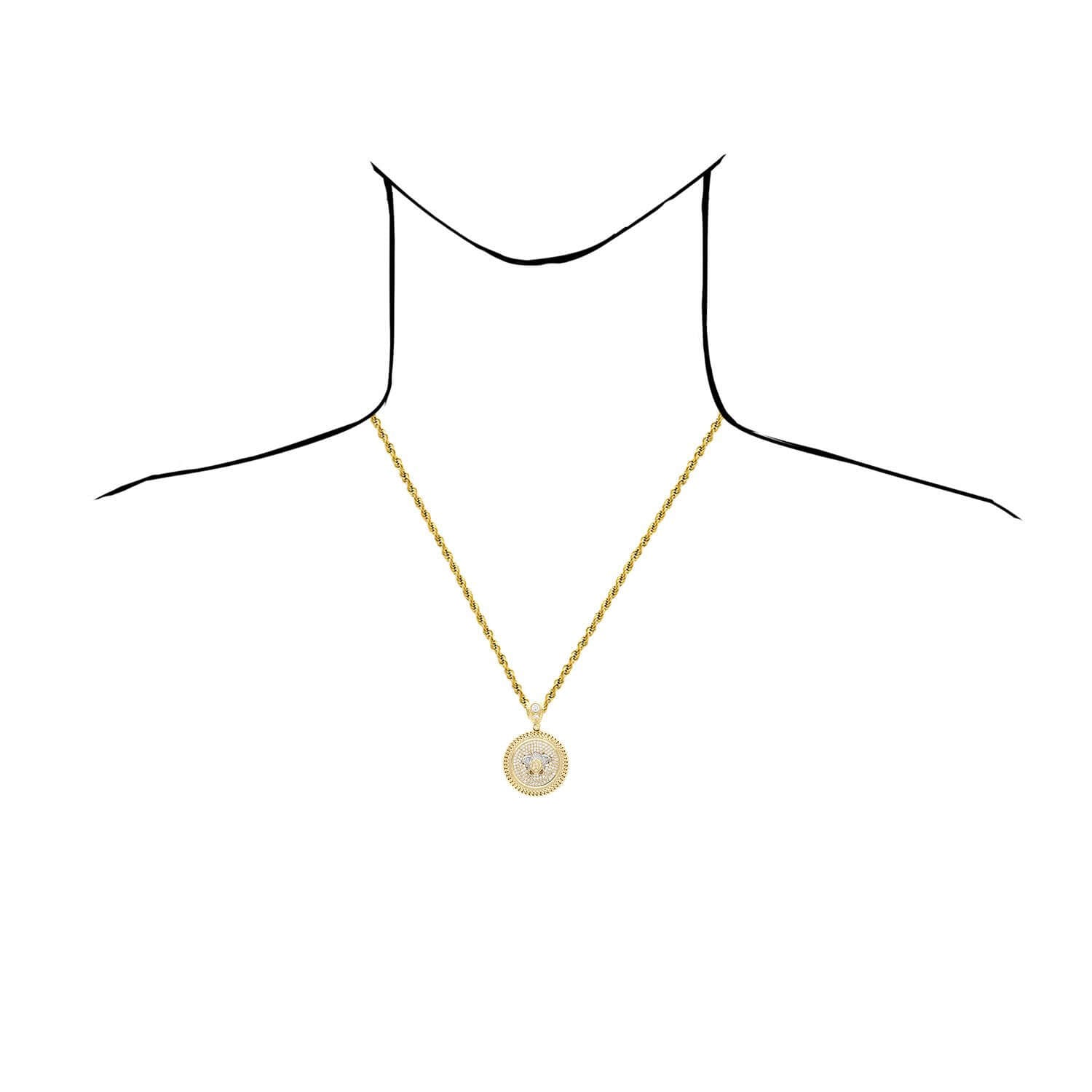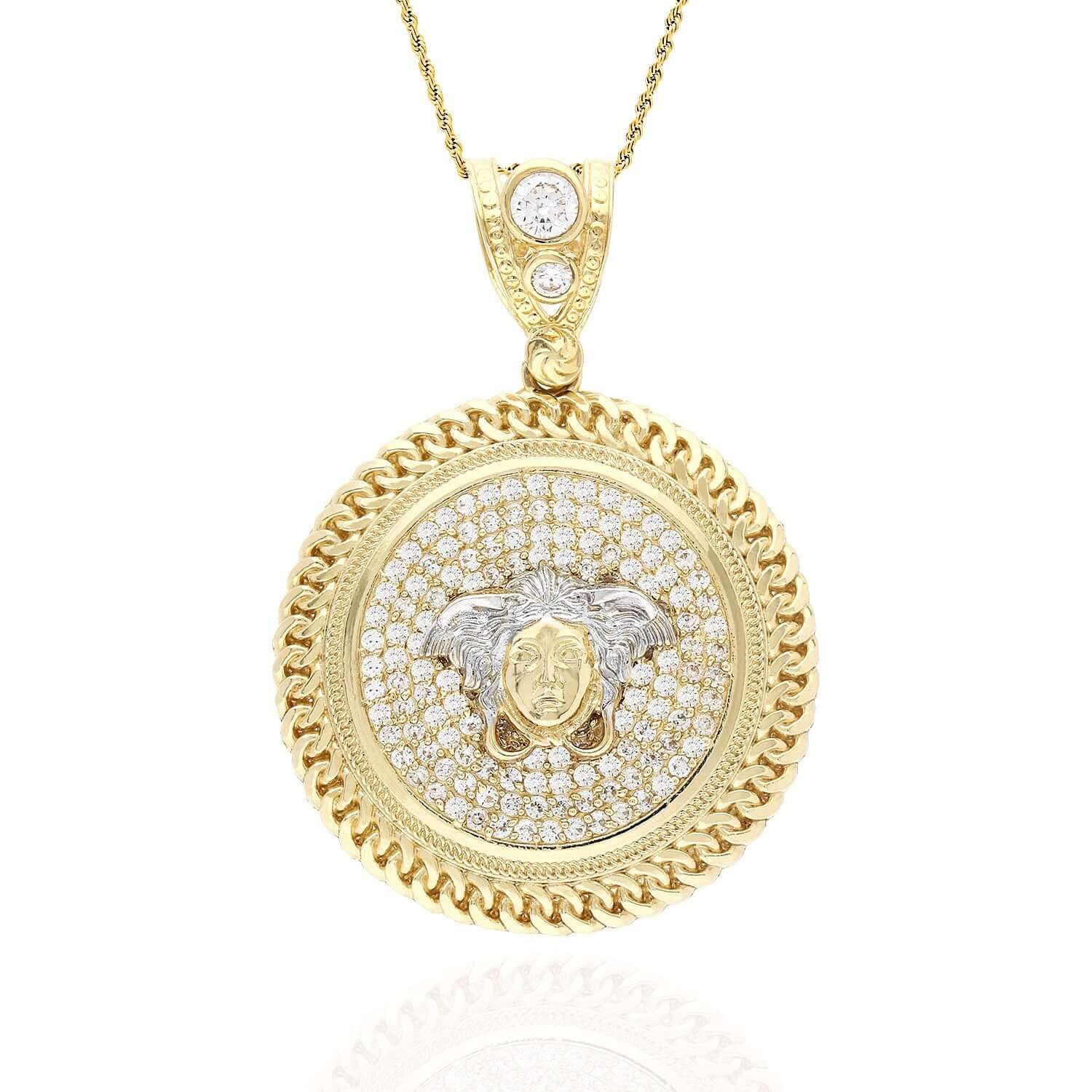 Read full return policy10K Yellow Gold CZ Medusa Miami Bezel Medallion Pendant 1.73"