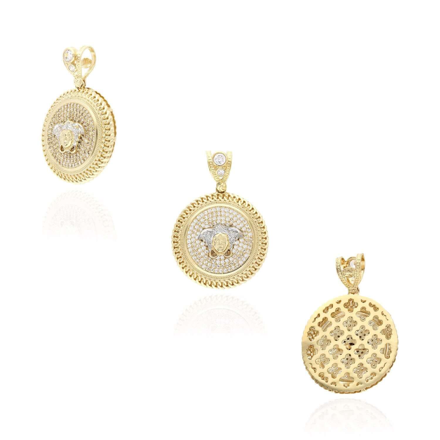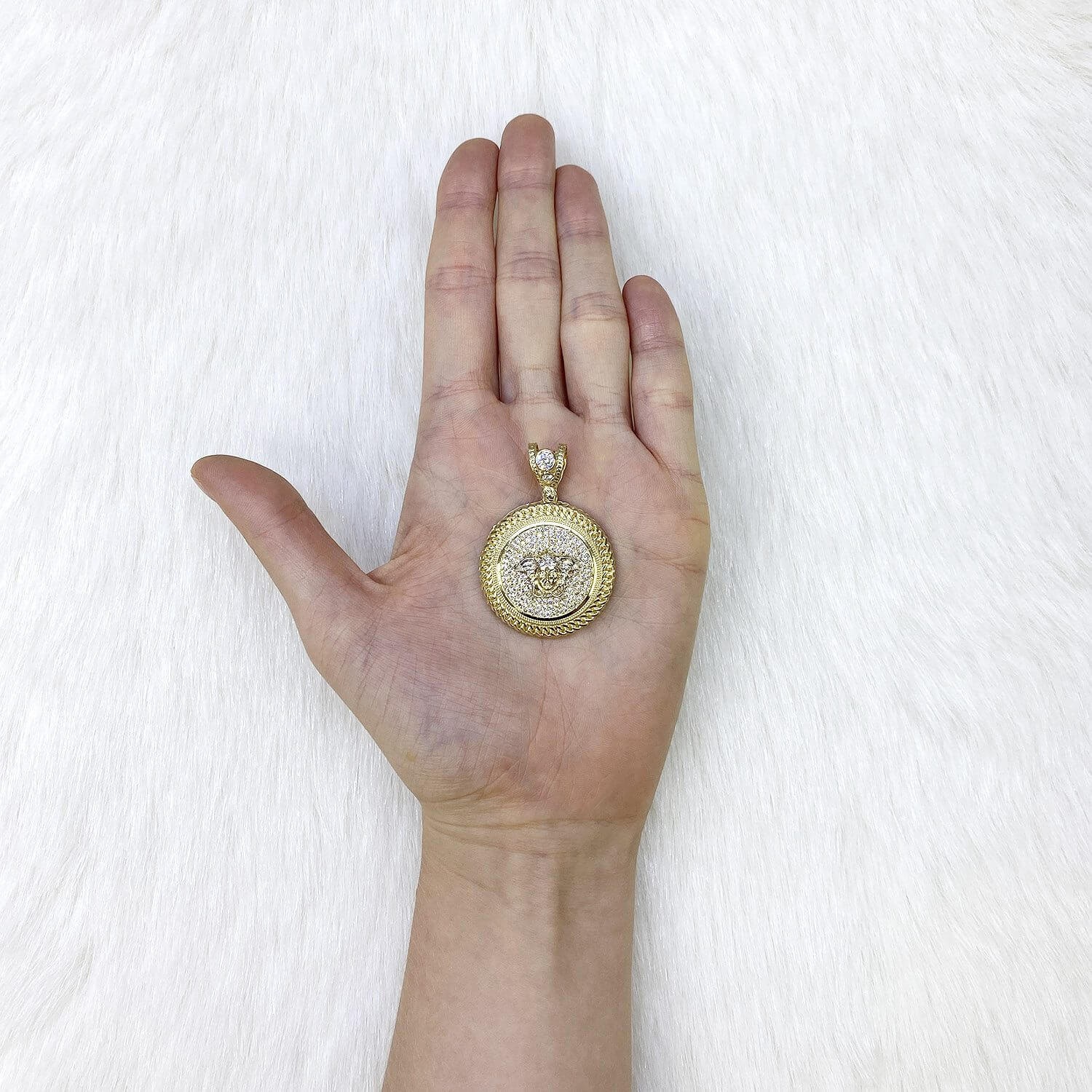 10K Yellow Gold CZ Medusa Miami Bezel Medallion Pendant 1.73"Couldn't load pickup availability