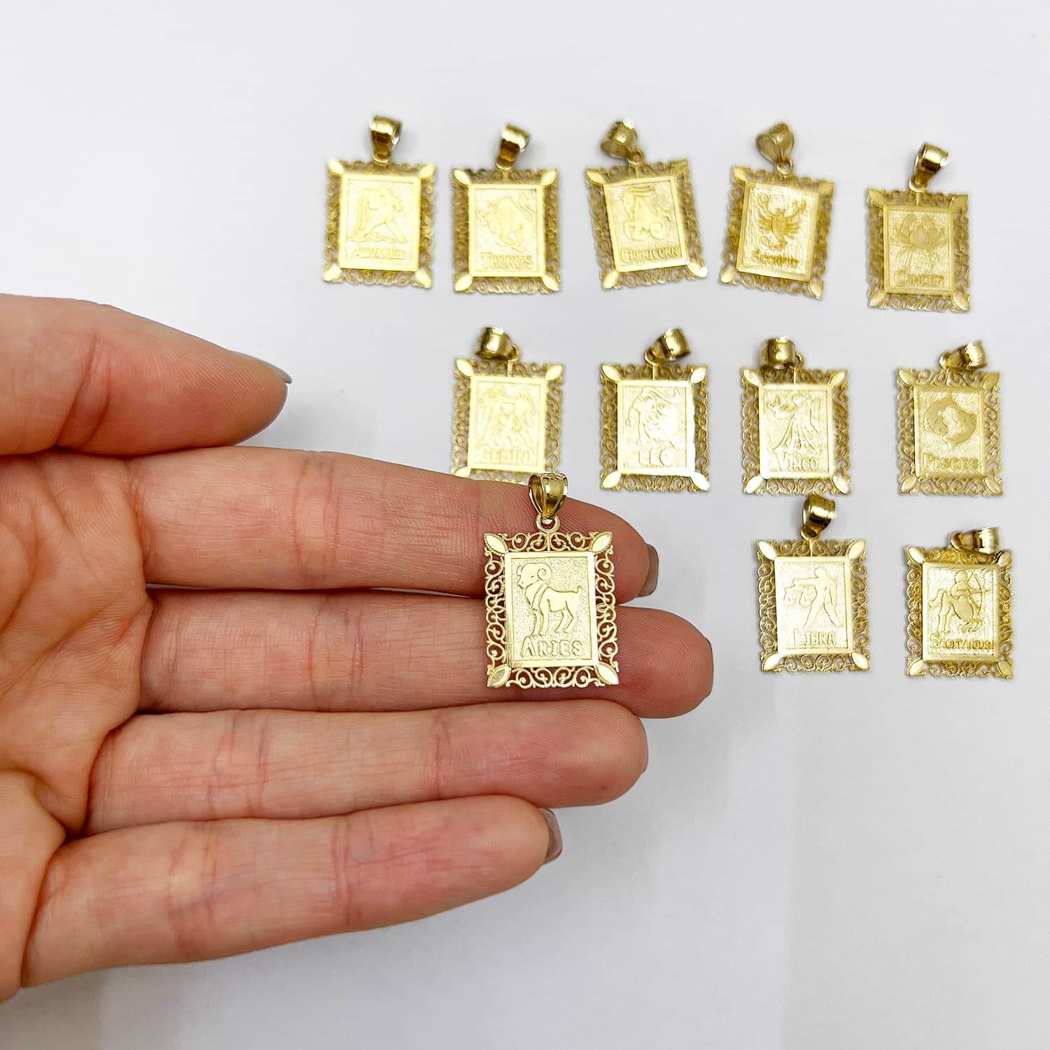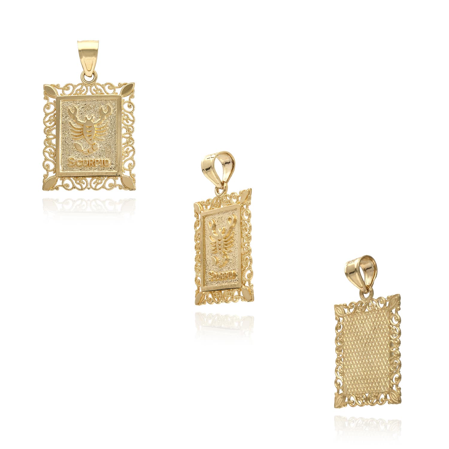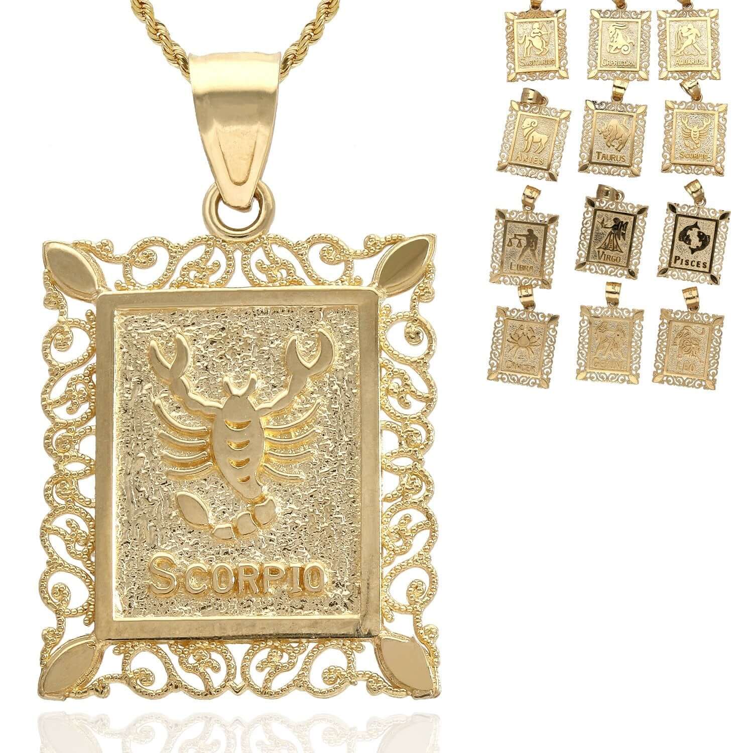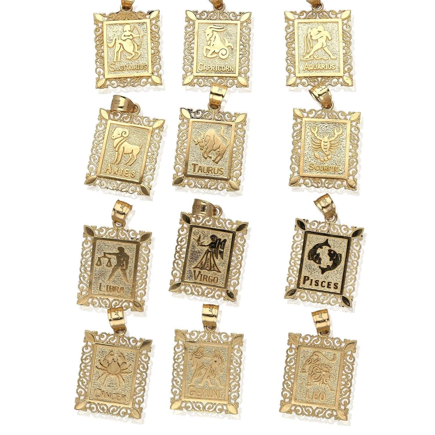 Read full return policy10K Yellow Gold Filigree Milgrain Frame Rectangular Zodiac Sign Pendant