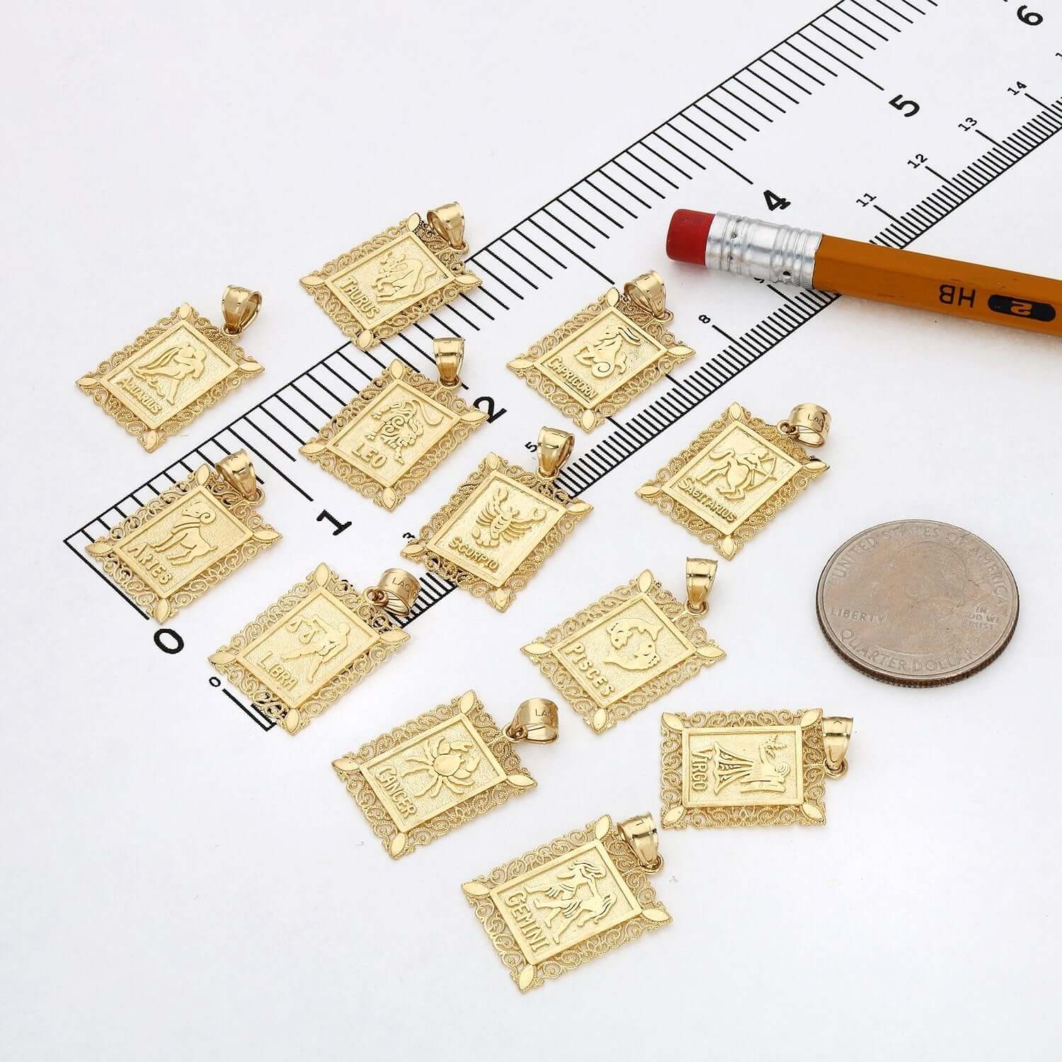 10K Yellow Gold Filigree Milgrain Frame Rectangular Zodiac Sign PendantCouldn't load pickup availability