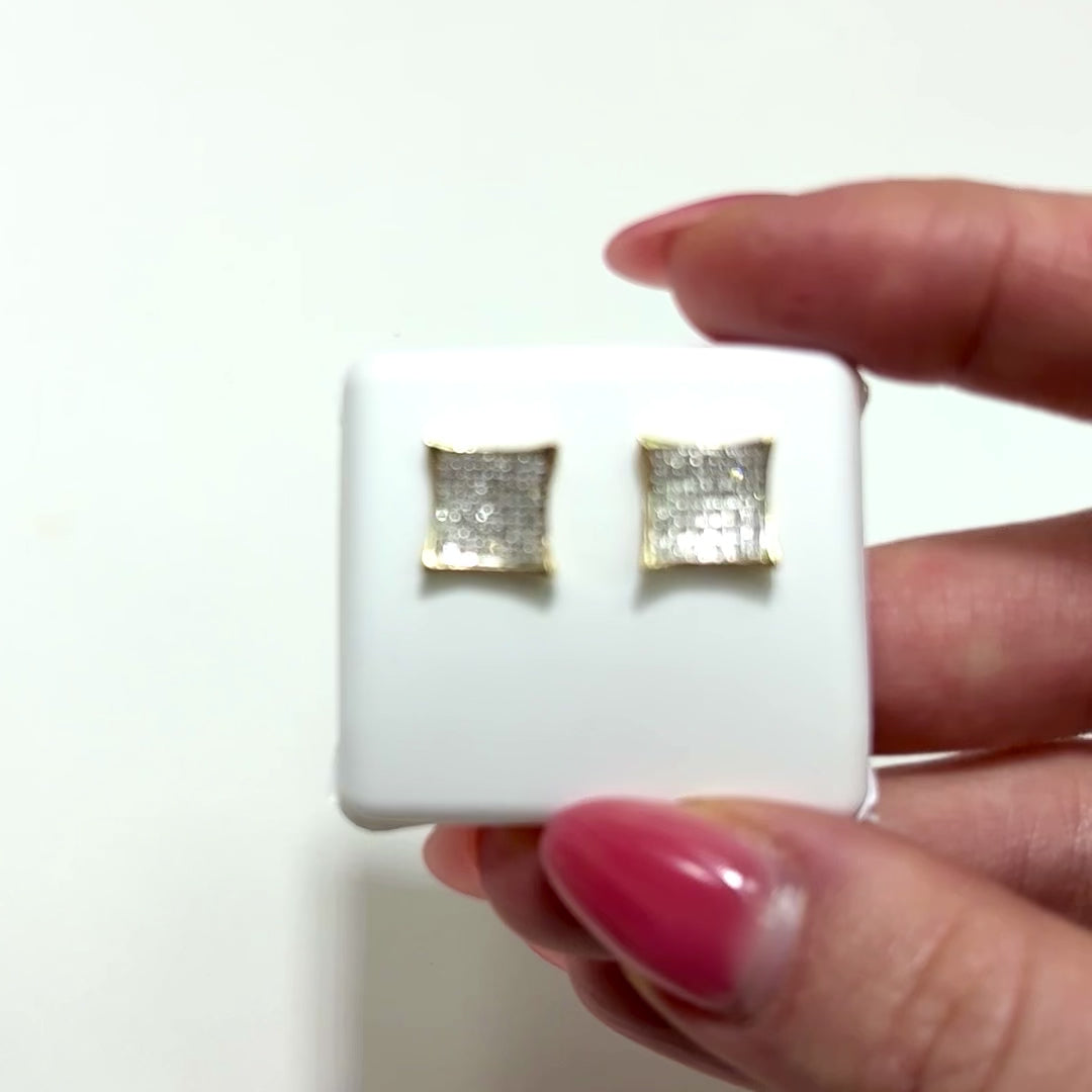 0.30CTW Natural Diamond 10K Yellow Gold Kite Square Stud Earrings 12mm