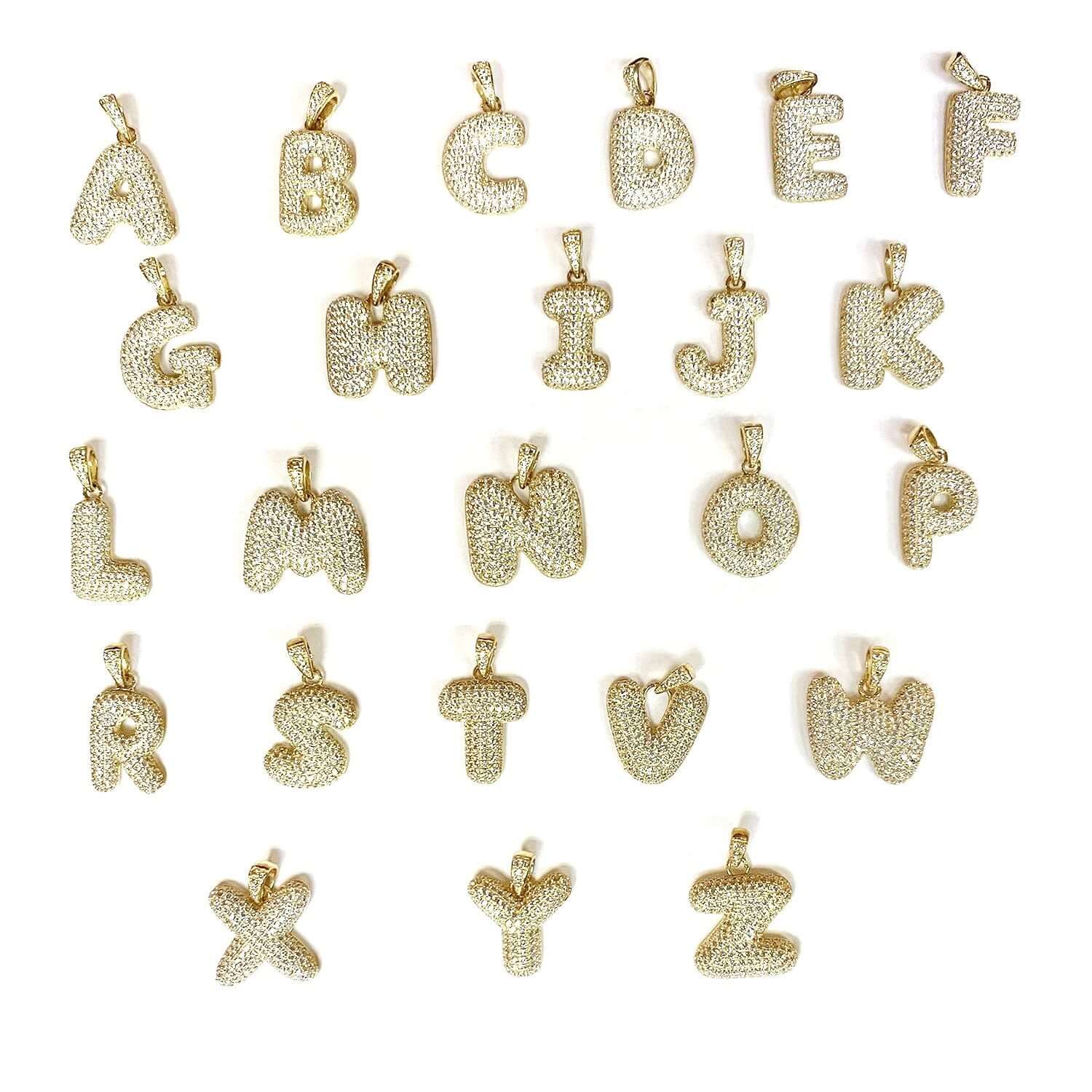 Read full return policy10k Yellow Gold Micro Pave Set CZ Bubble Large Initial Pendant A-Z