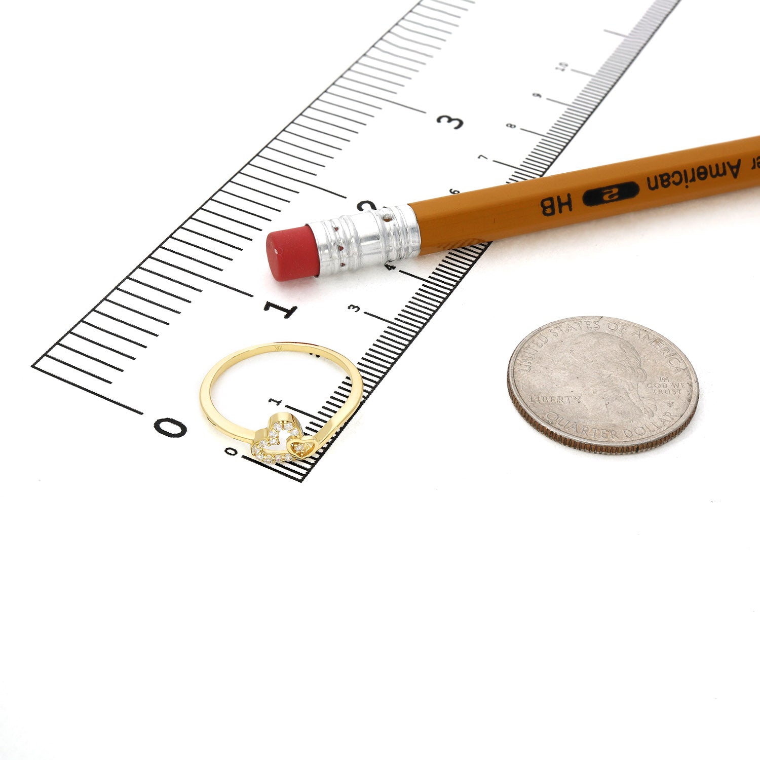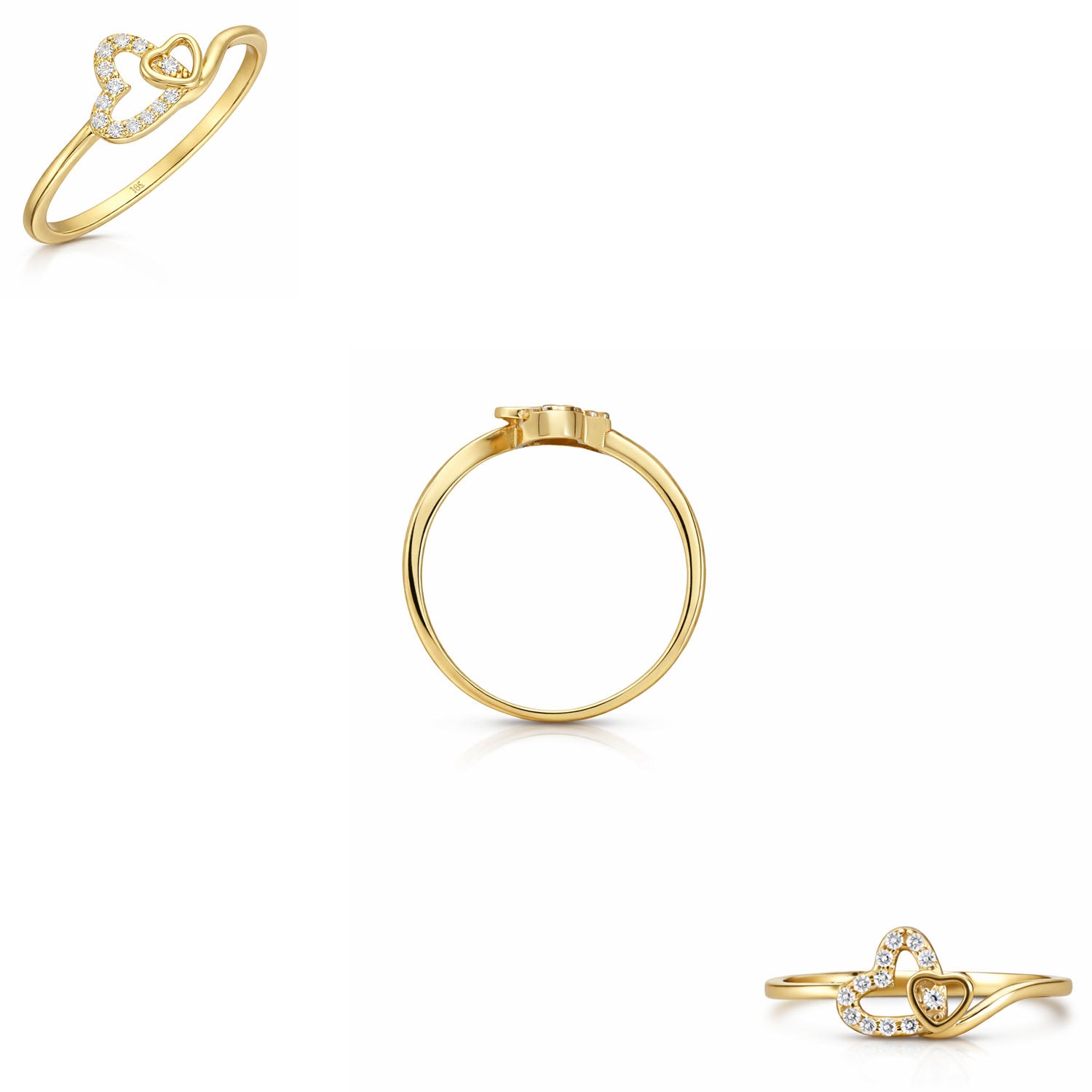 10K Yellow Gold Open Double Heart Pavé 0.25CTW CZ Stackable RingCouldn't load pickup availability