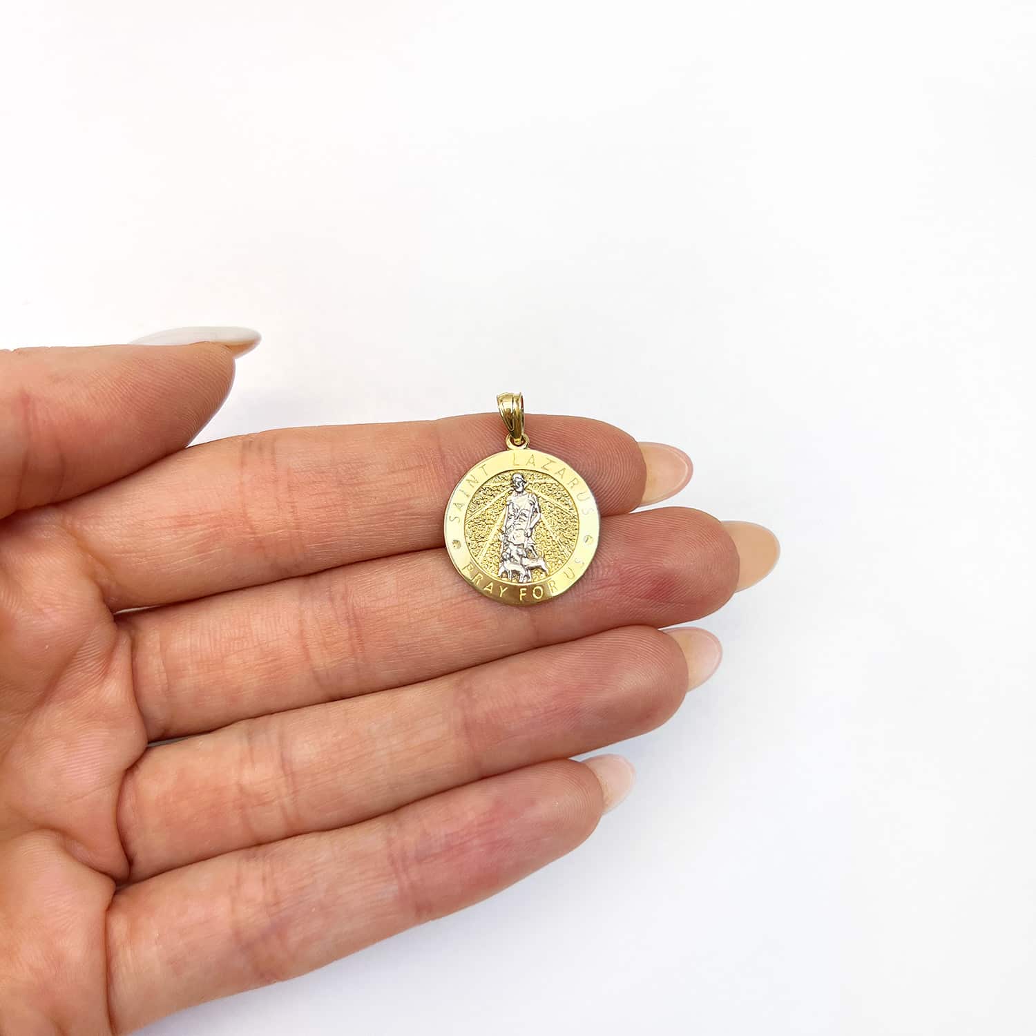 10K Yellow Gold Religious Saint Lazarus Pray For Us Medallion Pendant 0.8" 0.9"Couldn't load pickup availability