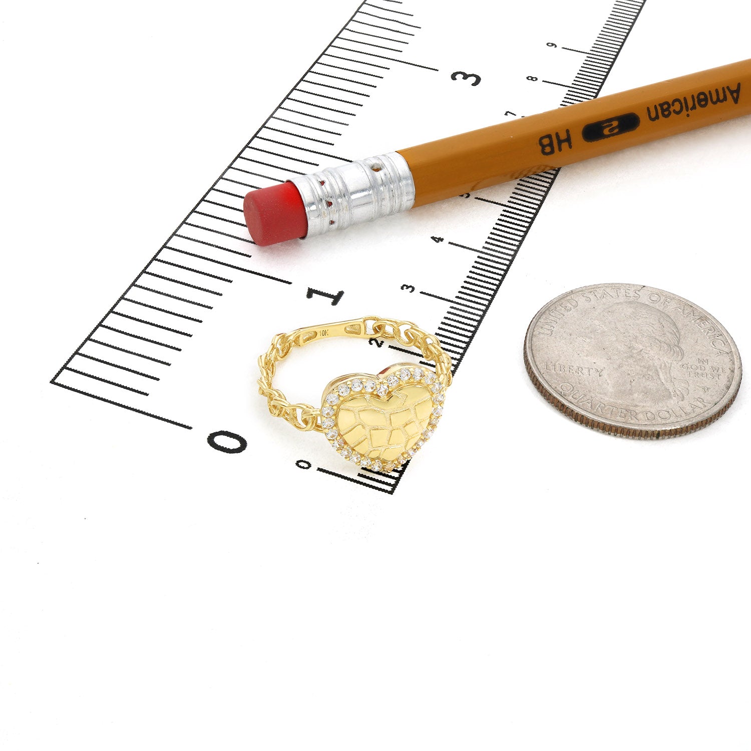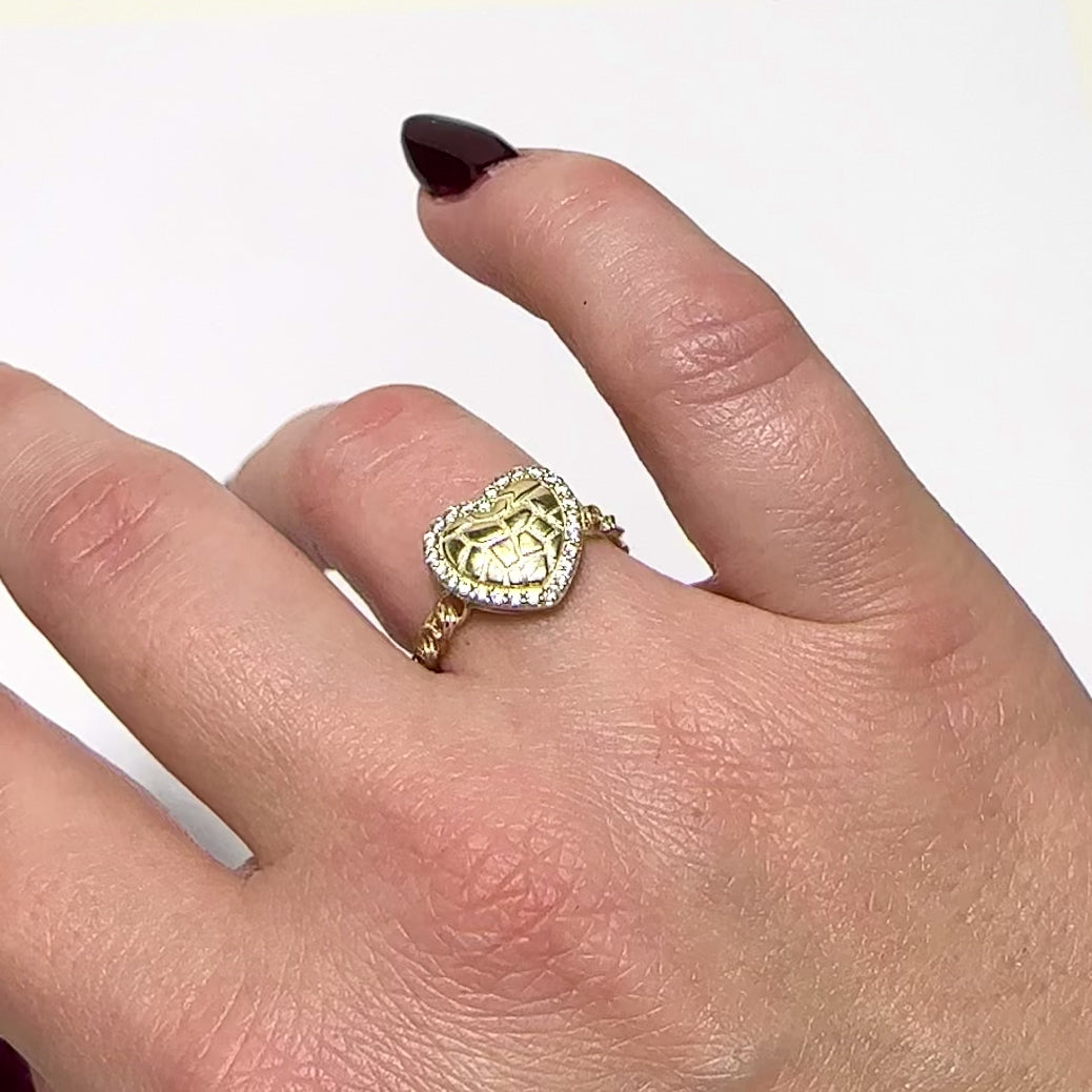 10K Yellow Gold Textured Heart 0.50CTW CZ Halo Stackable RingCouldn't load pickup availability