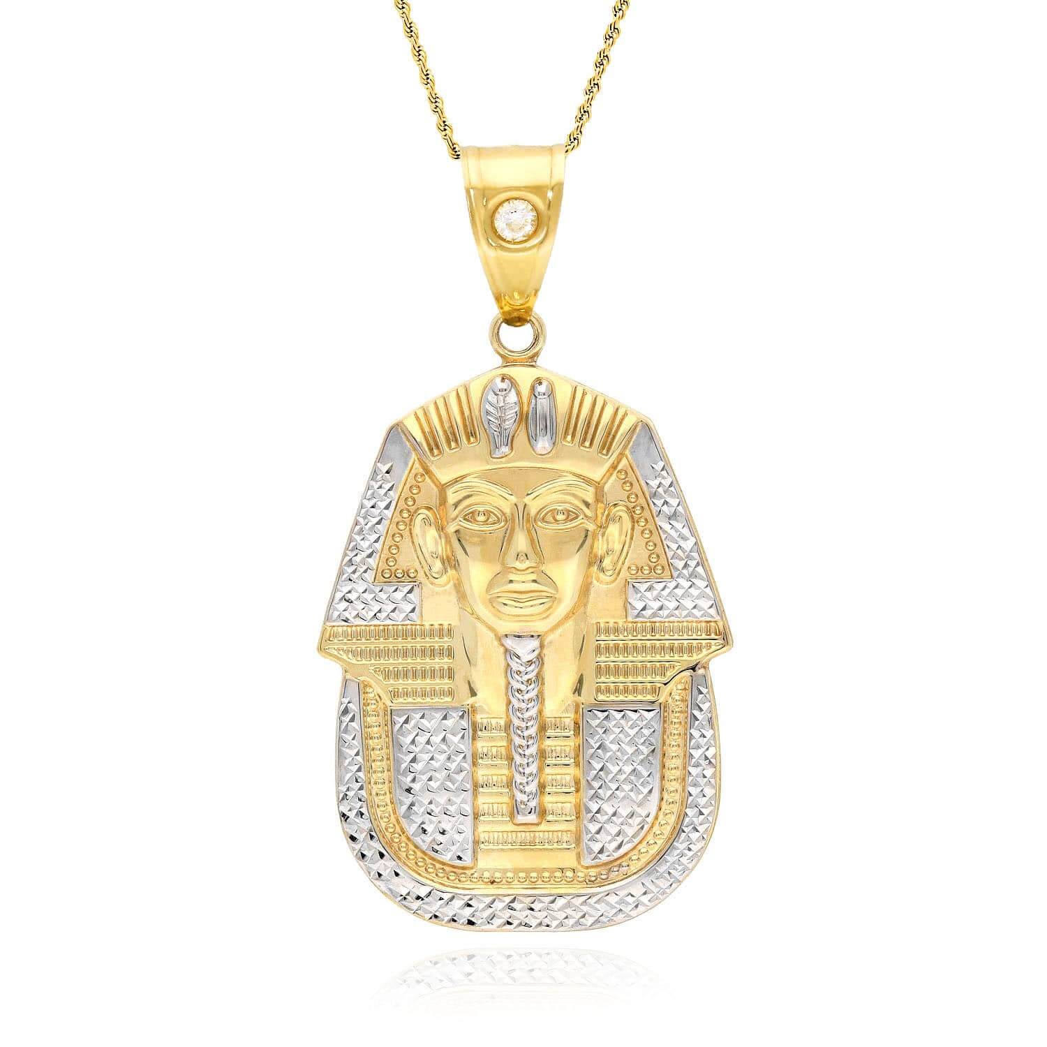 10K Yellow Gold Two Tone Diamond-Cut Pharaoh King Tut PendantCouldn't load pickup availability