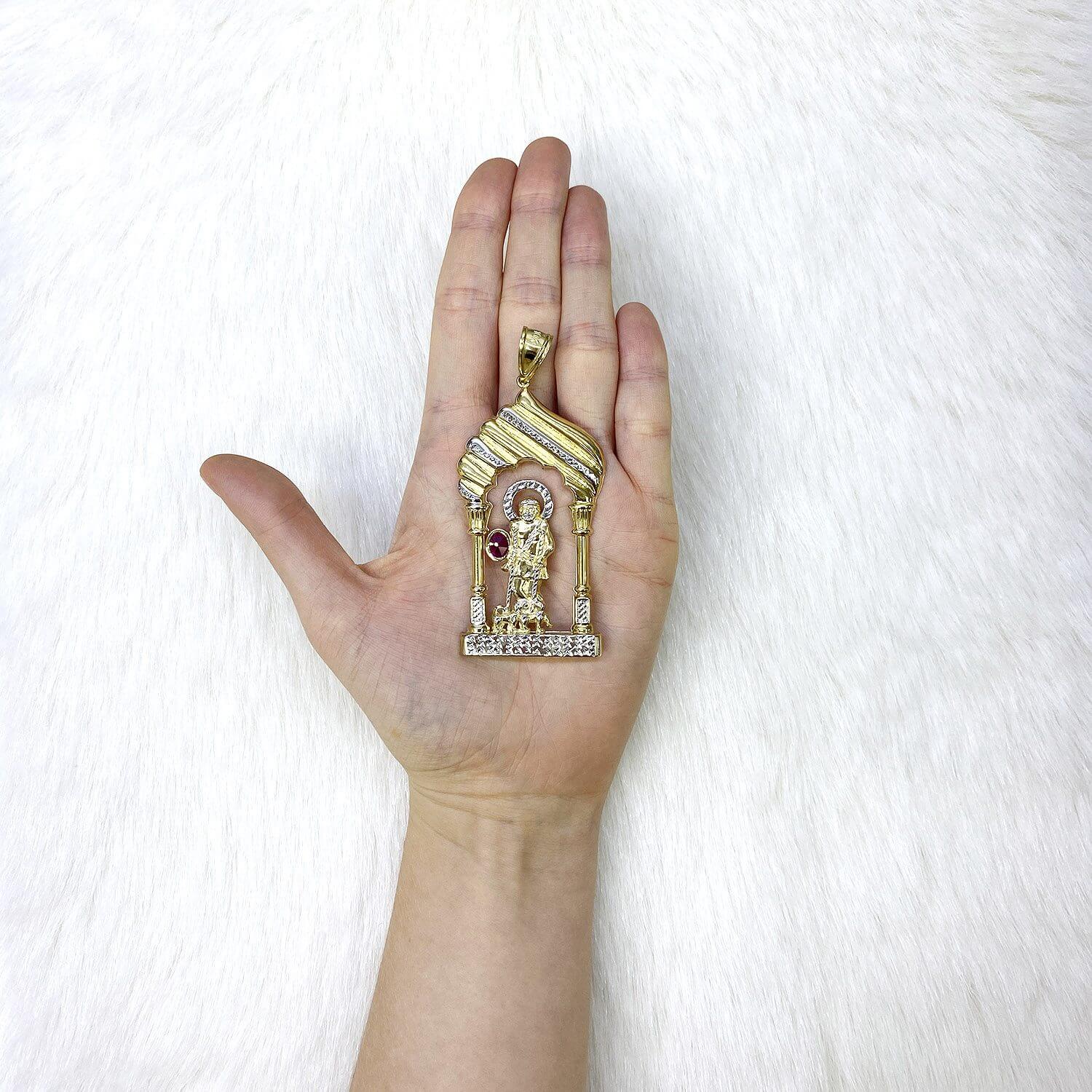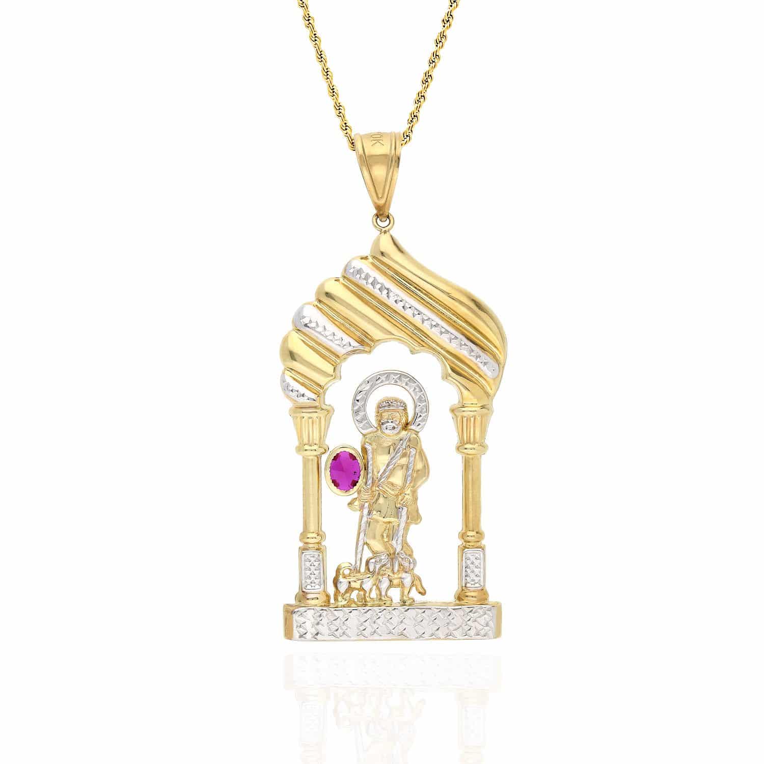 Read full return policy10K Yellow Gold Two Tone Diamond-Cut Red Ruby Saint Lazarus Pendant 3.3"