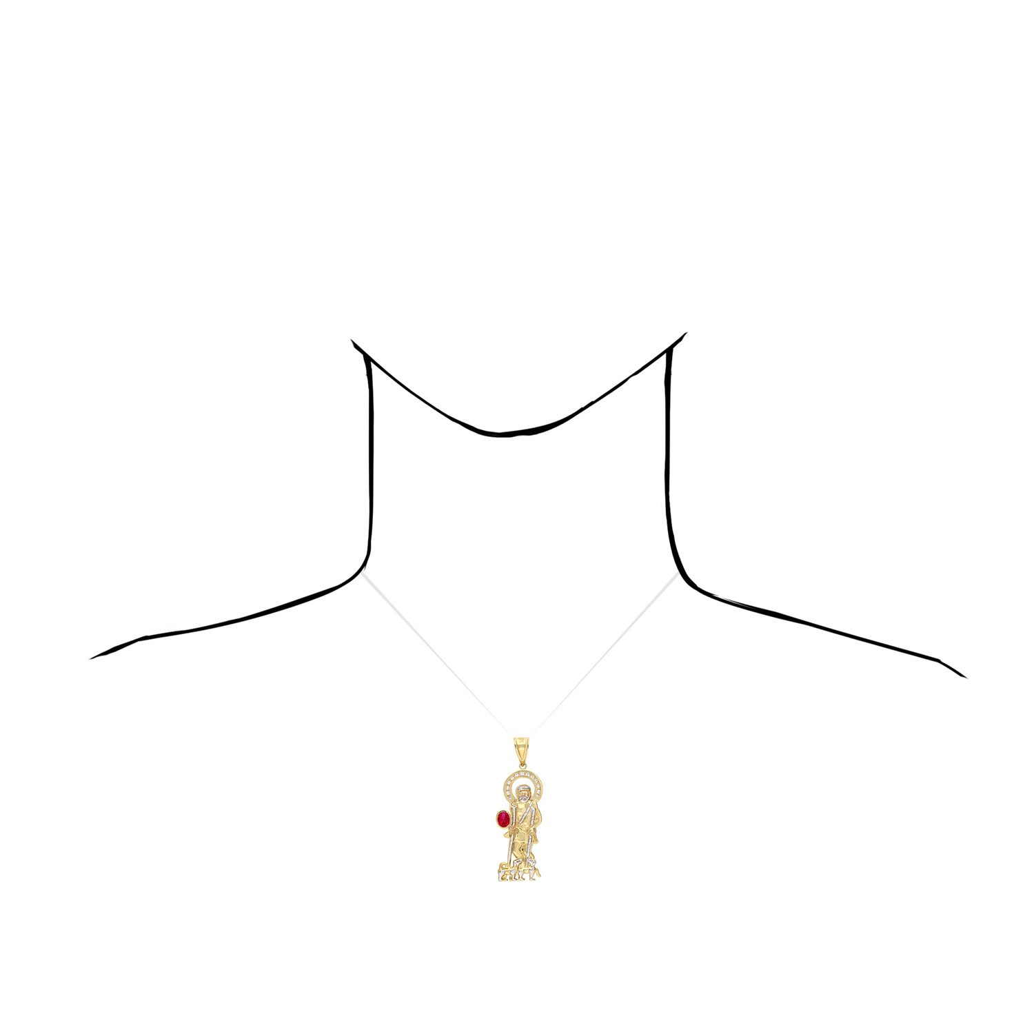 10K Yellow Gold White Zirconia And Red Ruby Saint Lazare PendantCouldn't load pickup availability