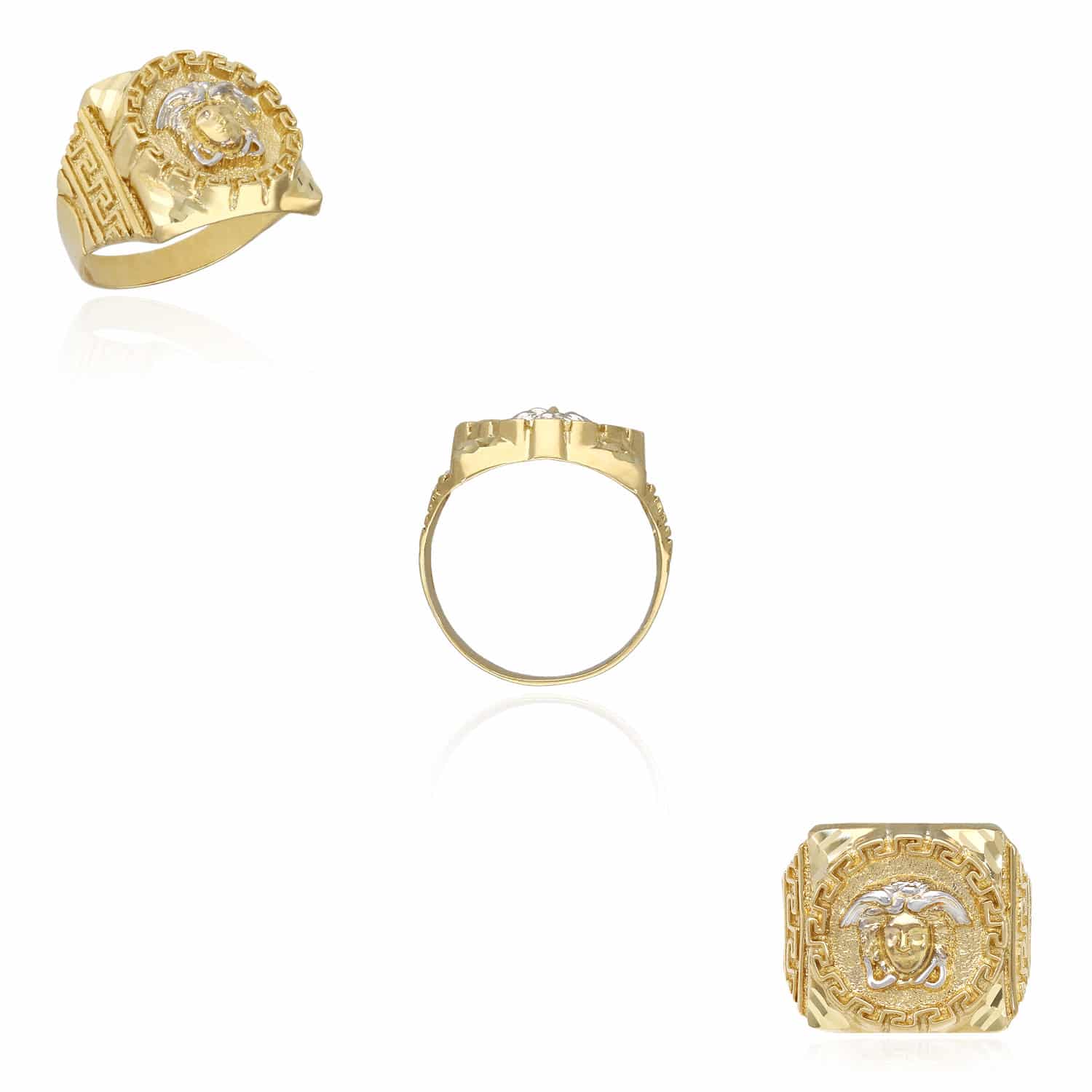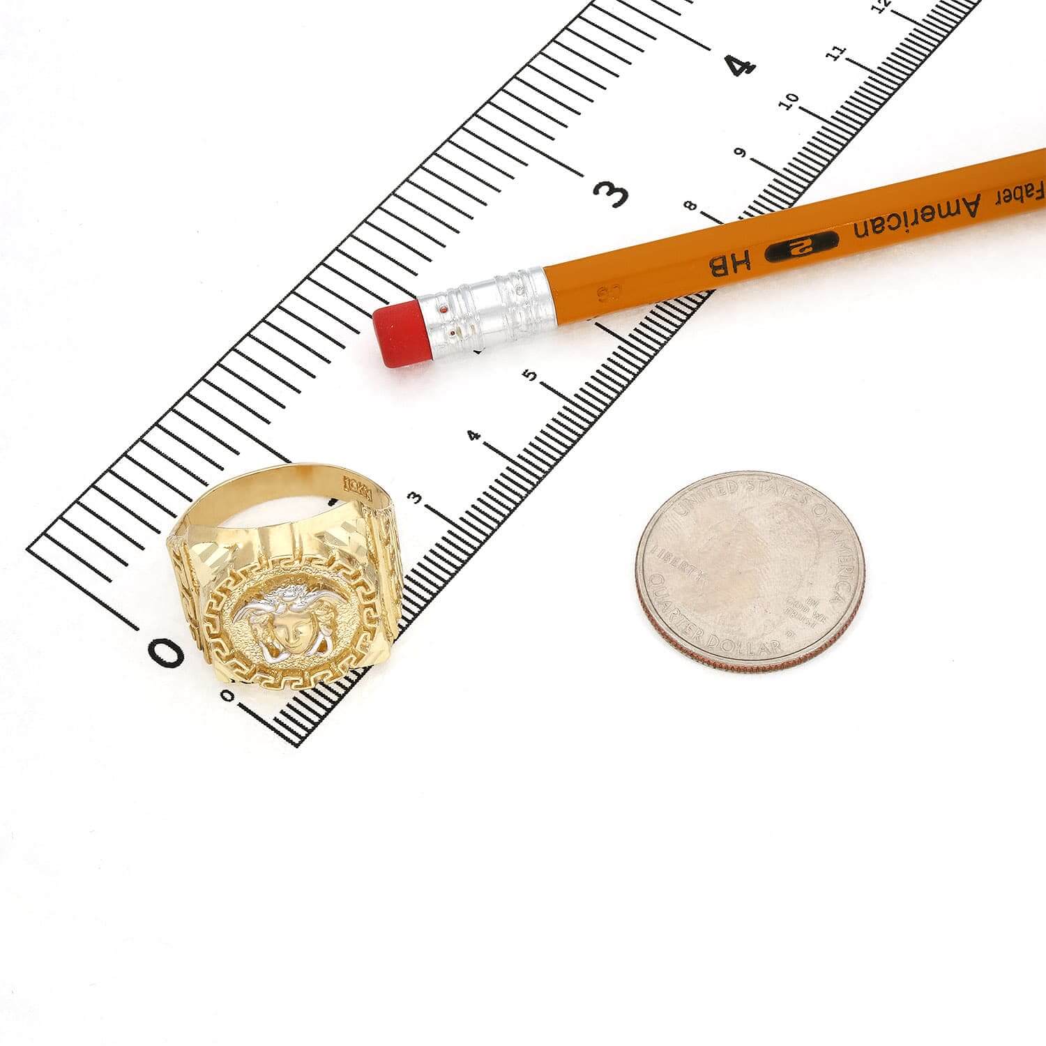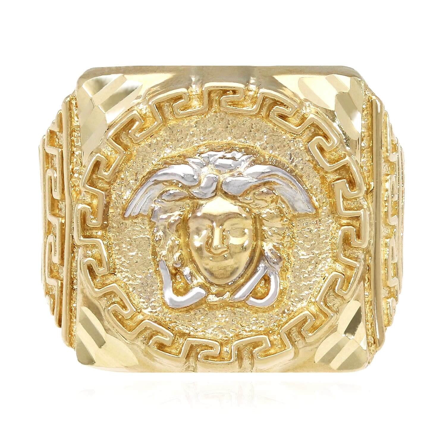 10K Gold Yellow With White Gold Accents Diamond-Cut Medusa Head Signet RingCouldn't load pickup availability