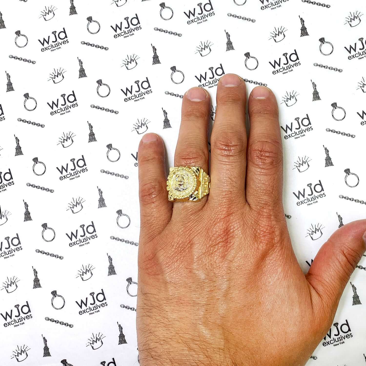 Read full return policy10K Gold Yellow With White Gold Accents Diamond-Cut Medusa Head Signet Ring
