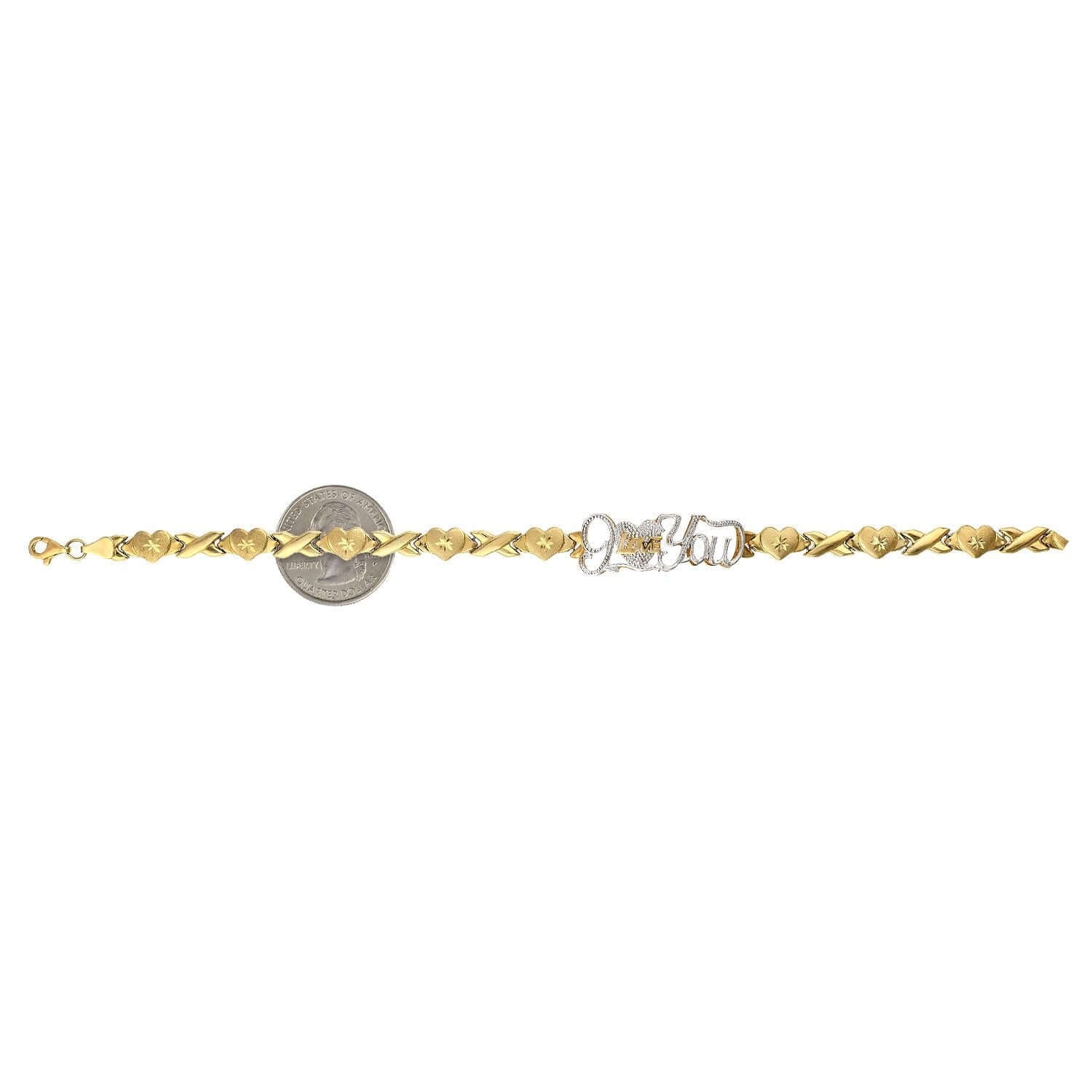 10K Two-Tone Gold Heart & Kisses "I Love You" XO Ankle Bracelet (Hollow) 10"Couldn't load pickup availability