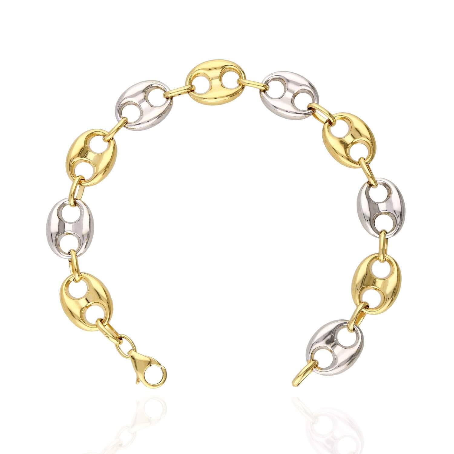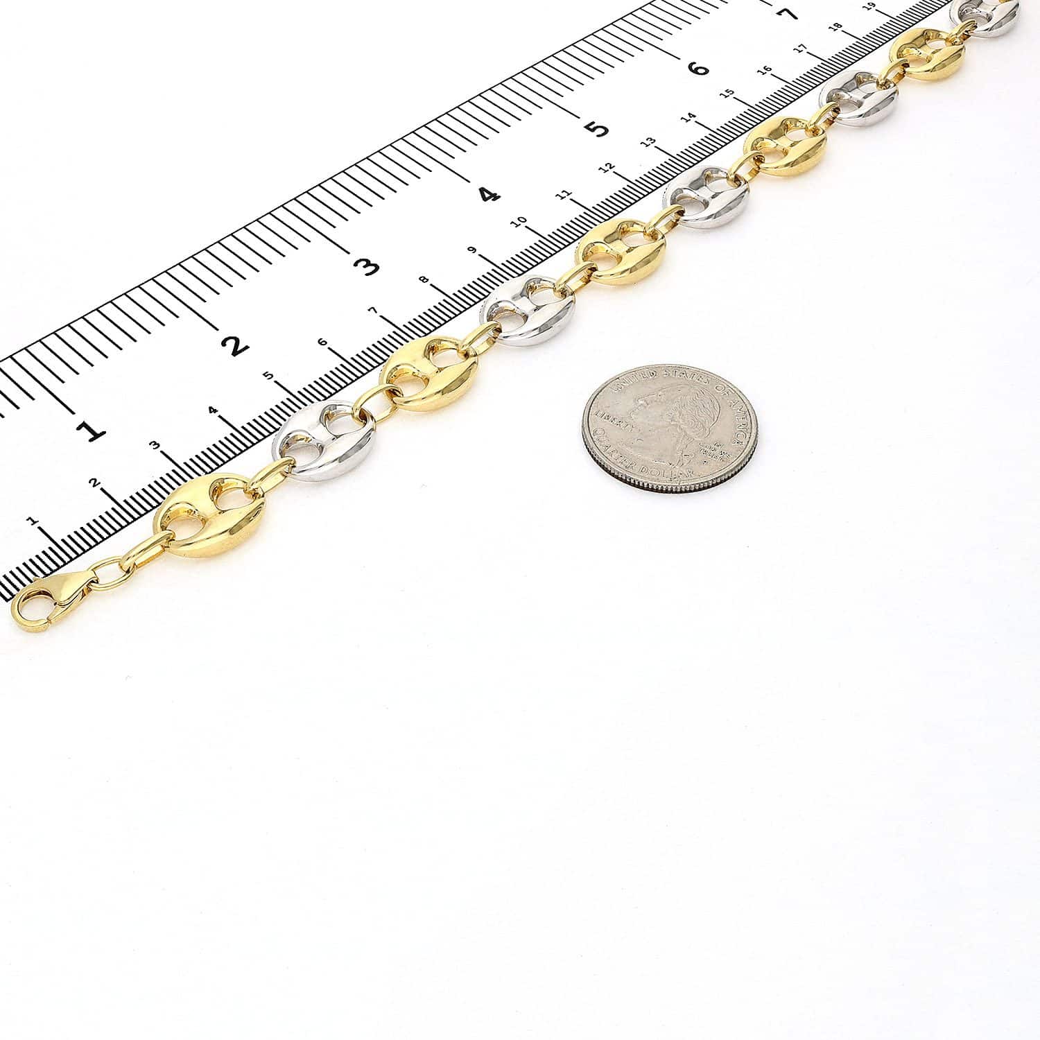 Read full return policy10K Yellow White Gold Two-Tone 12mm Puffed Anchor Mariner Bracelet (Hollow) 8.5"