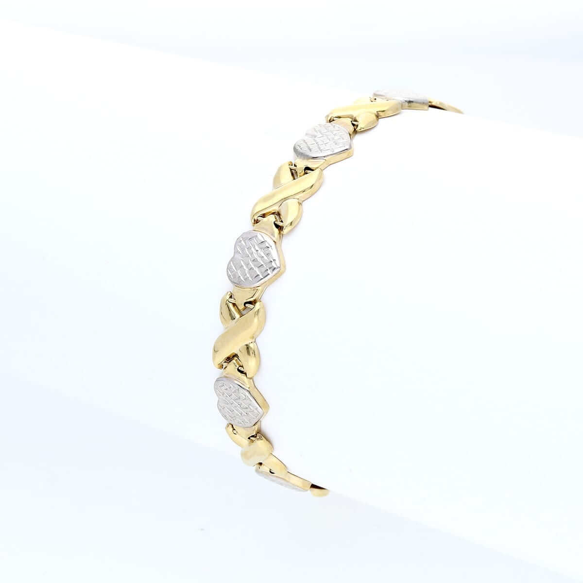 10K Gold Two-Tone Diamond-Cut Hearts & Kisses XO Bracelet (Hollow) 8"Couldn't load pickup availability