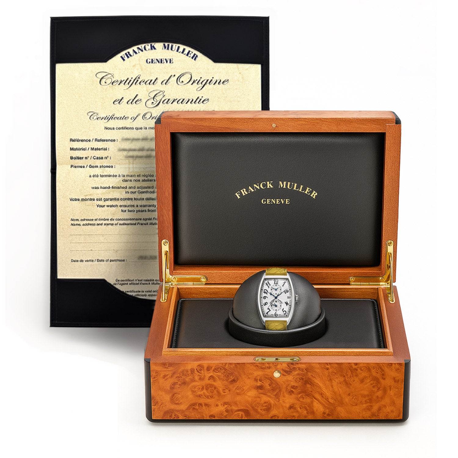 Returns policy →NEW Franck Muller Master Banker 2852 MB 18K Gold Arabic Dial Yellow Leather Strap Watch