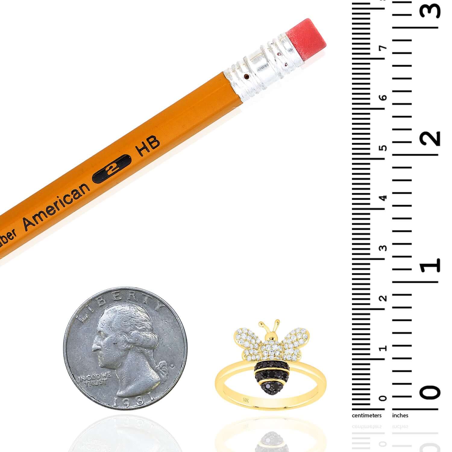 0.38CTW Natural White and Black Diamonds 10K Yellow Gold Honey Bee RingCouldn't load pickup availability