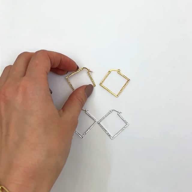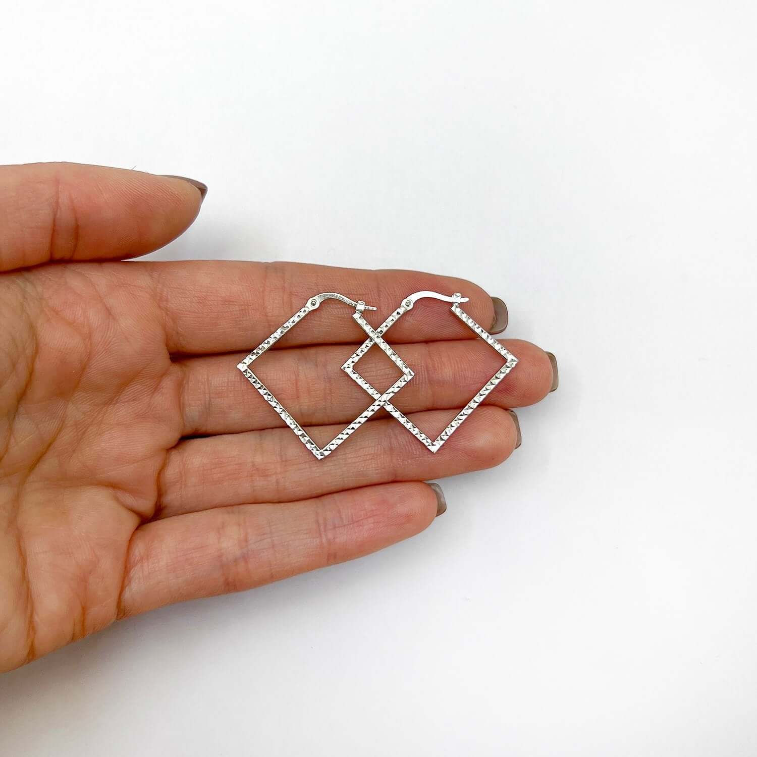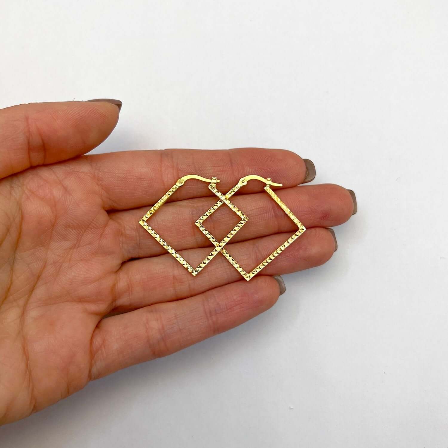 14K Gold Diamond-Cut Square Hoop Earrings 31mmCouldn't load pickup availability