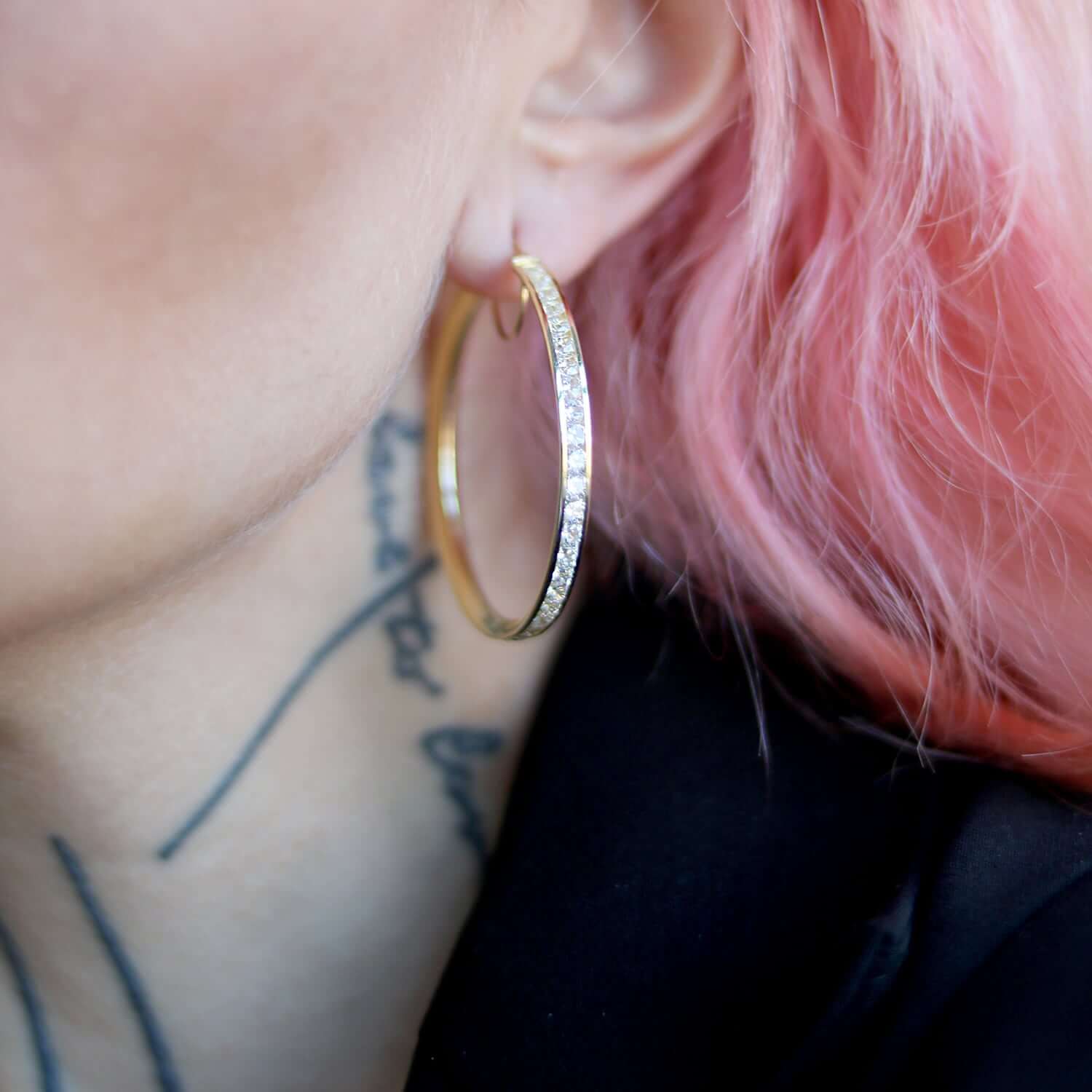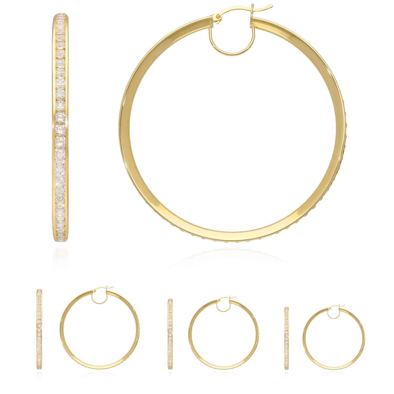 Read full return policy14K Gold Eternity Round CZ Channel Set Hoop Earrings 1.57"-2.17"