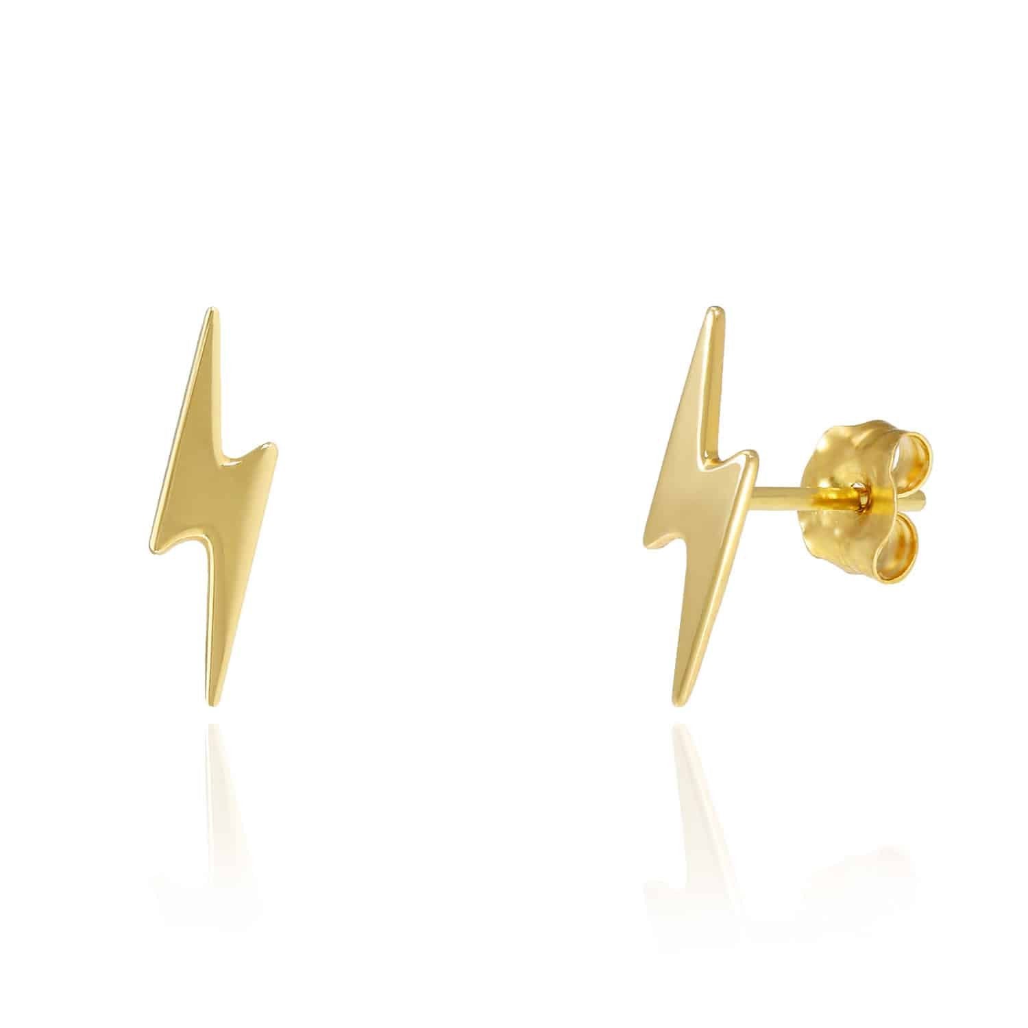 14K Gold Lightning Bolt Stud Earrings 0.3"-0.4"Couldn't load pickup availability