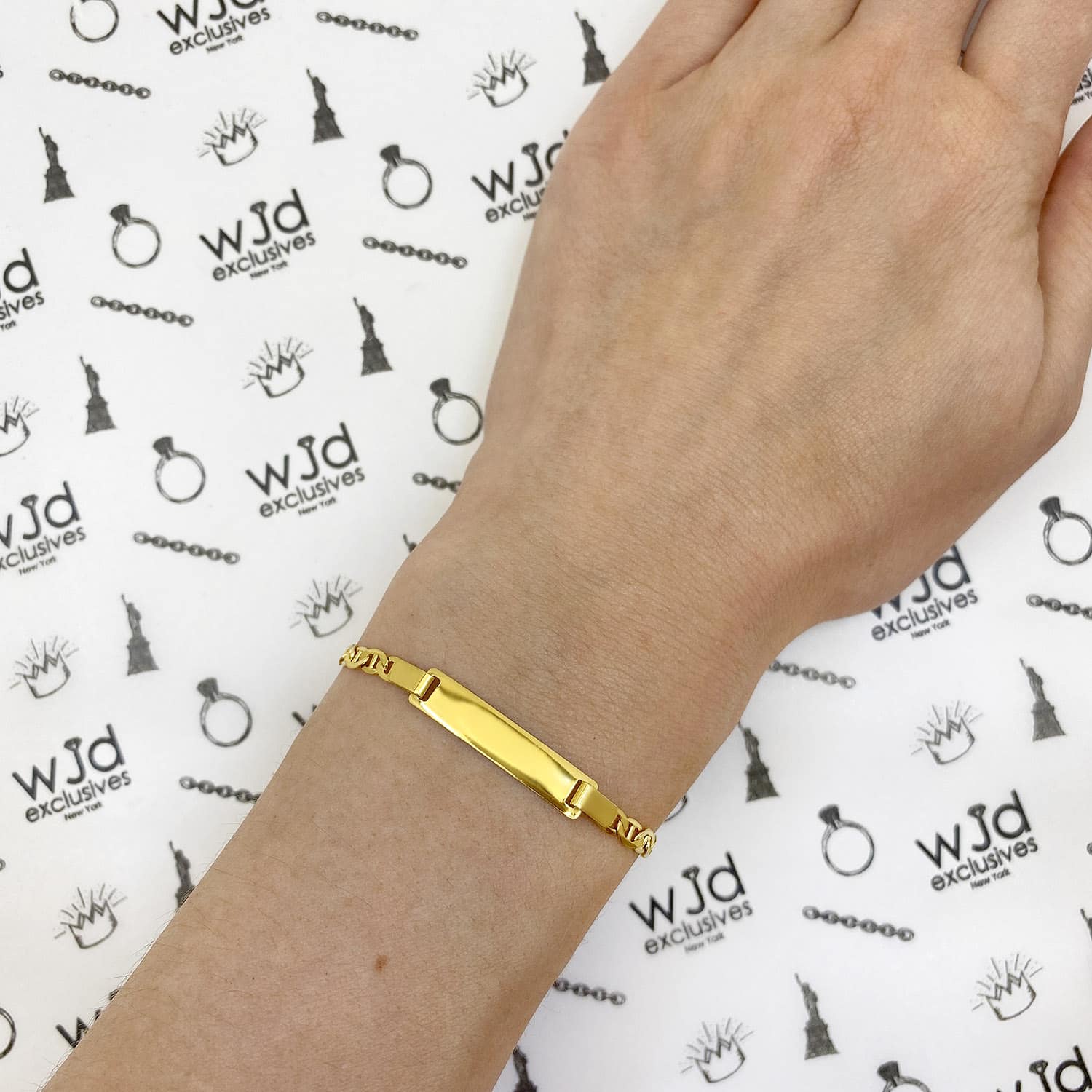Read full return policyKids 14K Yellow Gold Over Sterling Silver 3.5mm Anchor Mariner Engravable ID Bar Bracelet (Solid Links) 6"
