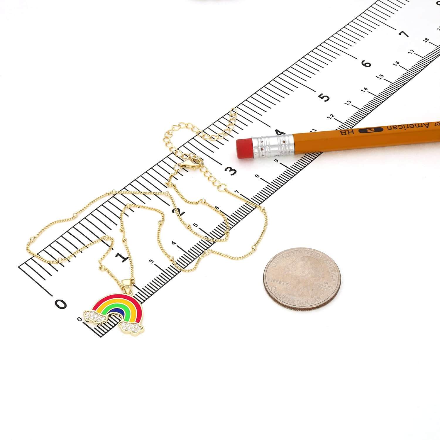 14K Gold Over Silver Enamel Rainbow Pendant with Ball Station Cuban 14"–17" Adjustable ChainCouldn't load pickup availability