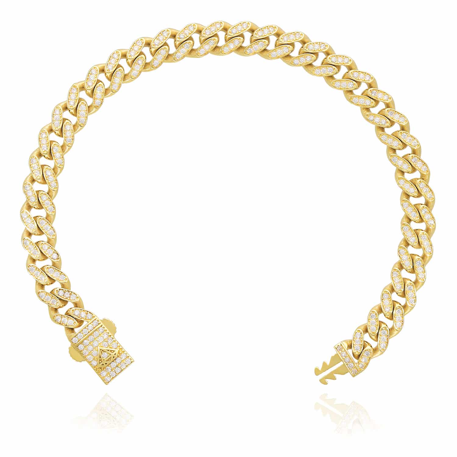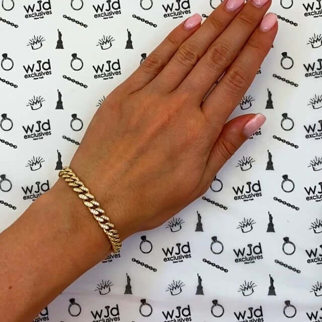 Read full return policy14K Gold CZ Pave 7mm Miami Cuban Bracelet (Hollow) 7", 8"
