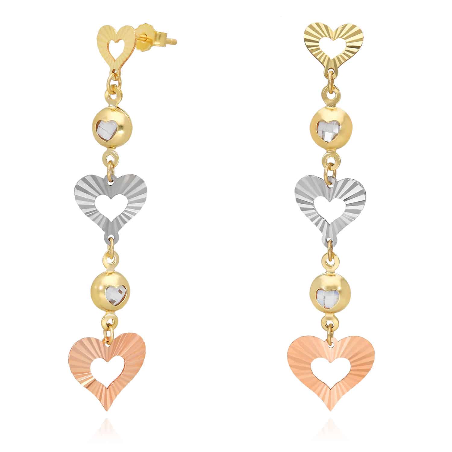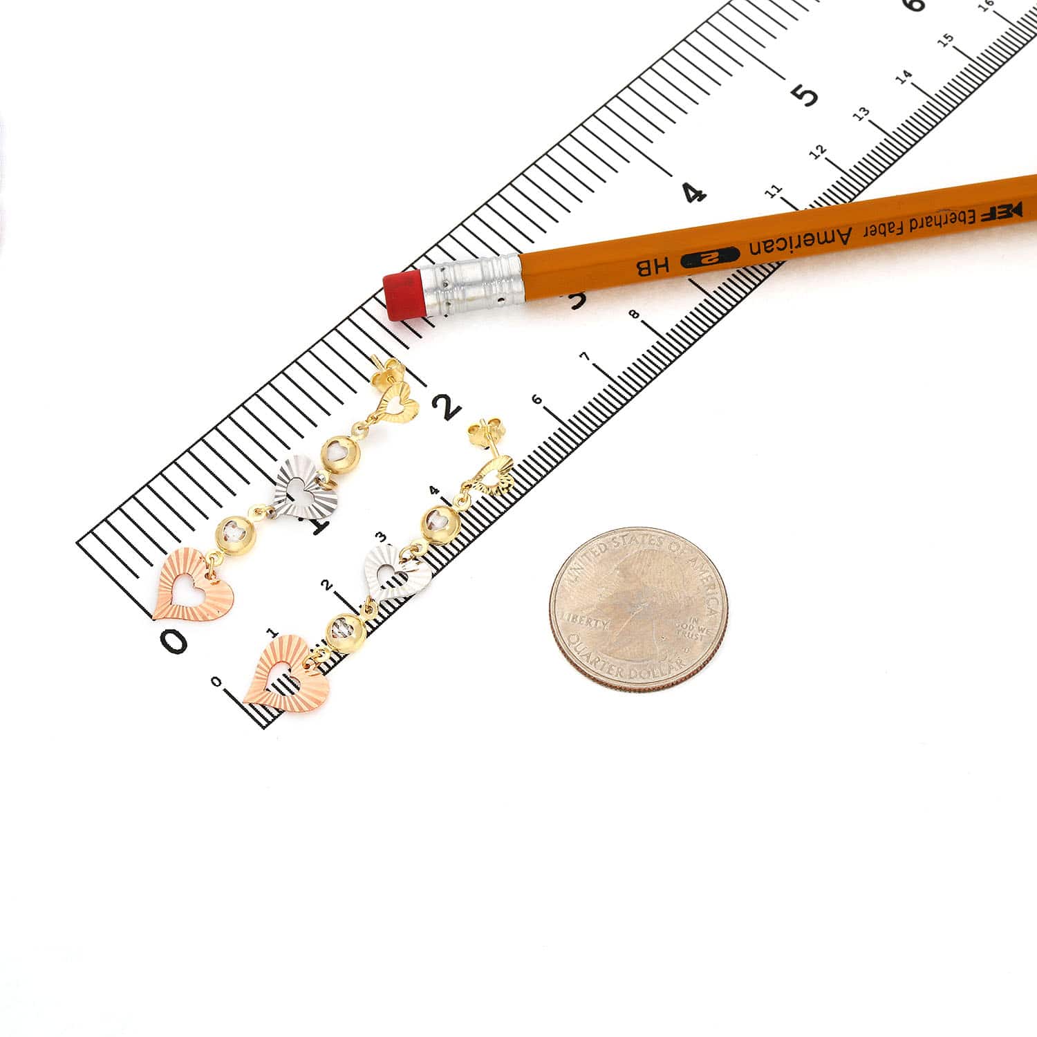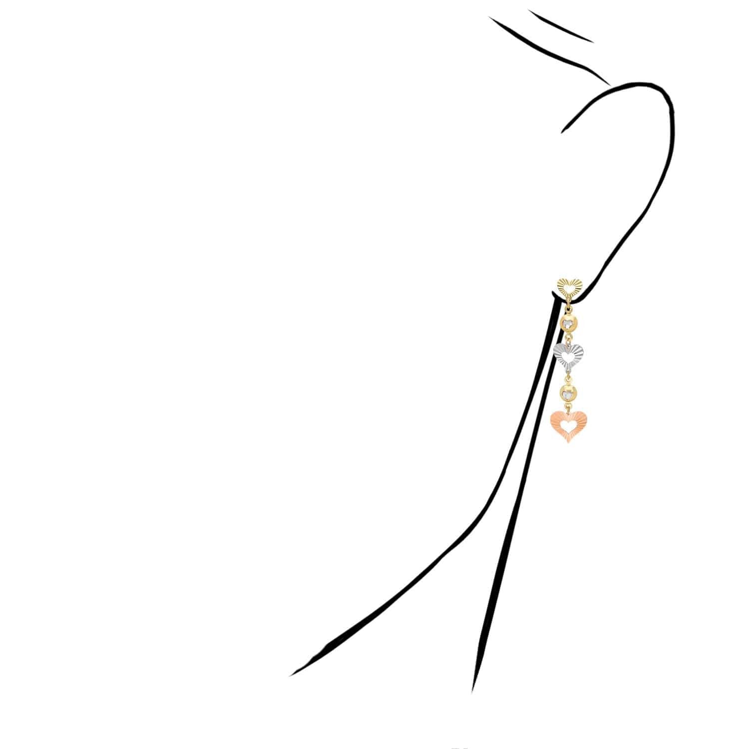 Read full return policy14K Gold Tri-Color Double Heart CZ Drop Earrings 35mm