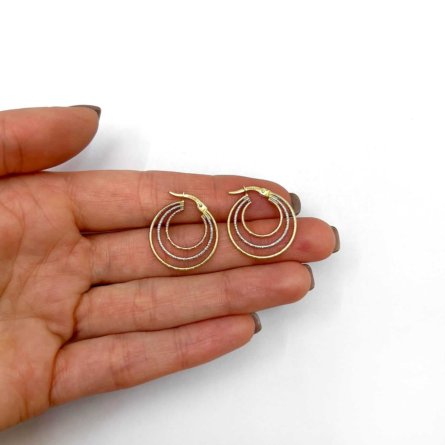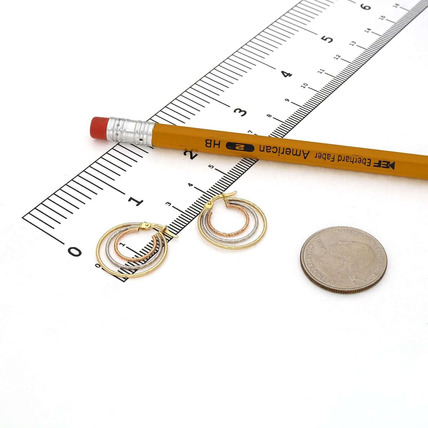 Read full return policy14K Gold Tri-Color Yellow White Rose Diamond-Cut Trinity Hoop Earrings 22mm