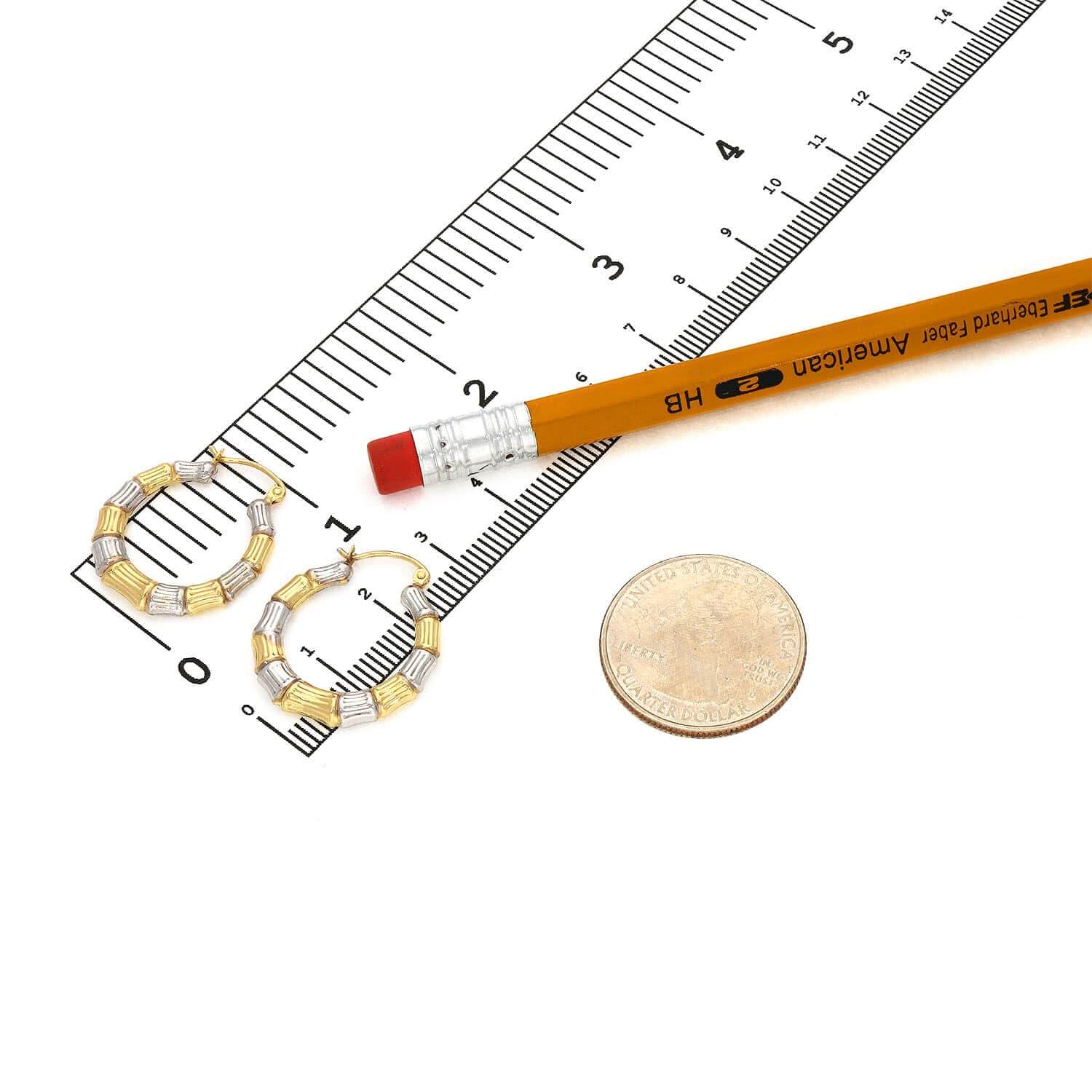 14K Gold Two-Tone Yellow White Bamboo Hoop Earrings 20mmCouldn't load pickup availability