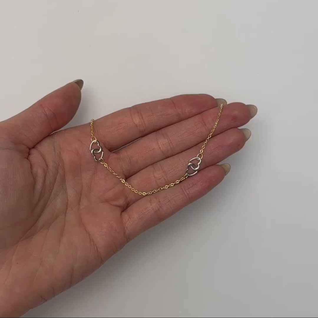 Read full return policy14K Yellow White Gold Interlocking Hearts Anklet (Hollow) 9"-10" Adjustable