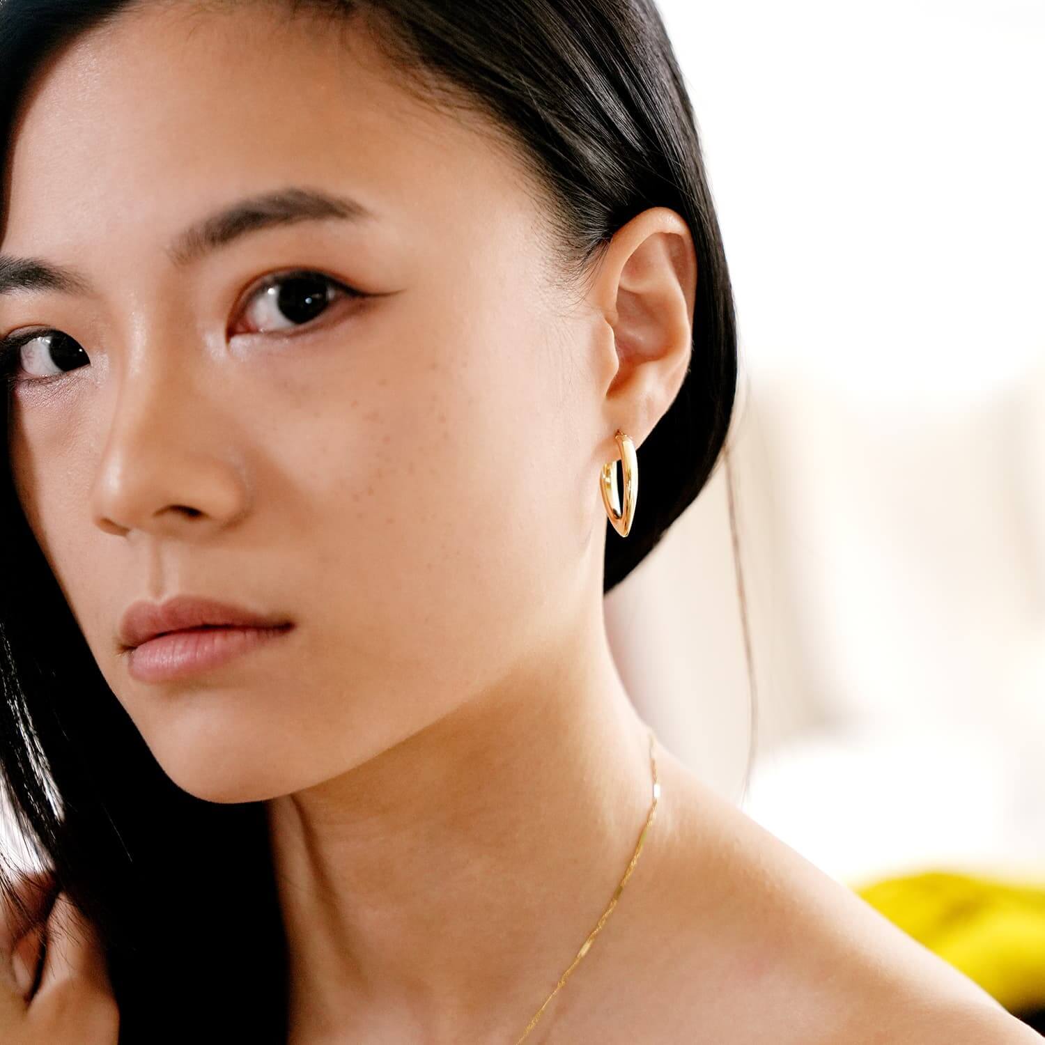 Read full return policy14K Yellow Gold White Graduated Oval Hoop Earrings 20mm