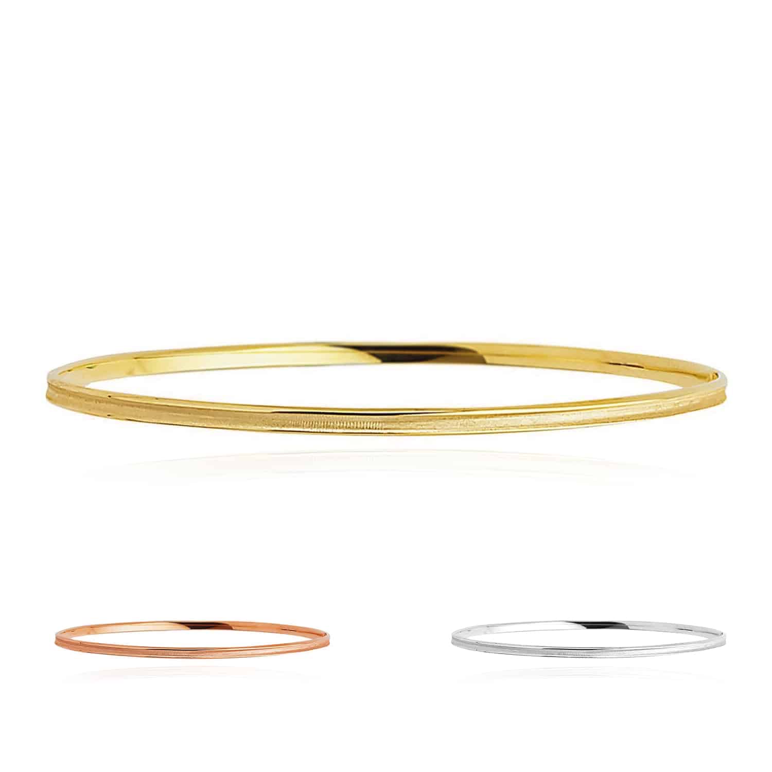 Read full return policy14K Yellow Gold White Rose 3.2mm Concave Bangle Bracelet 8"
