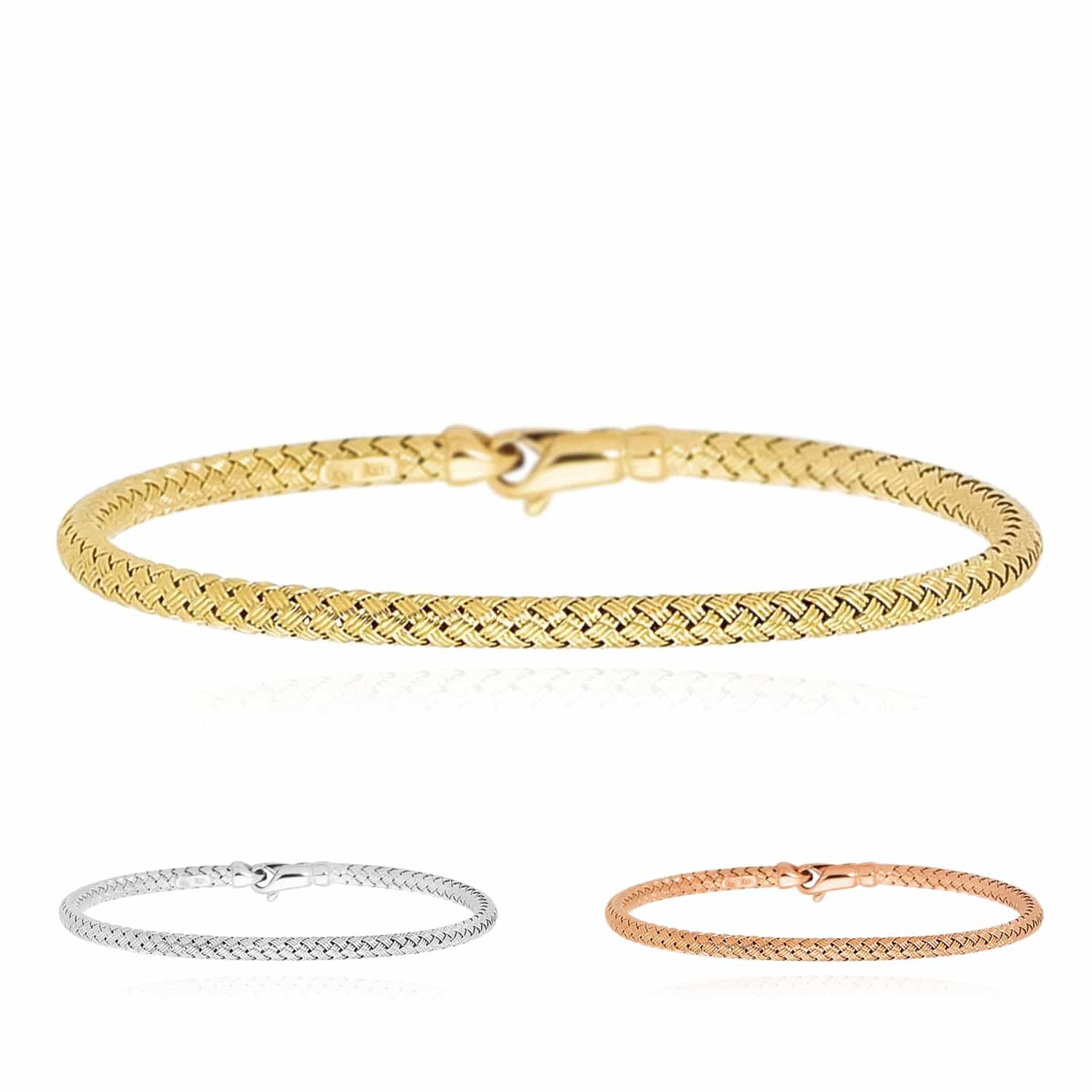 Read full return policy14K Yellow Gold White Rose 3.4mm Woven Bangle Bracelet 7.25"