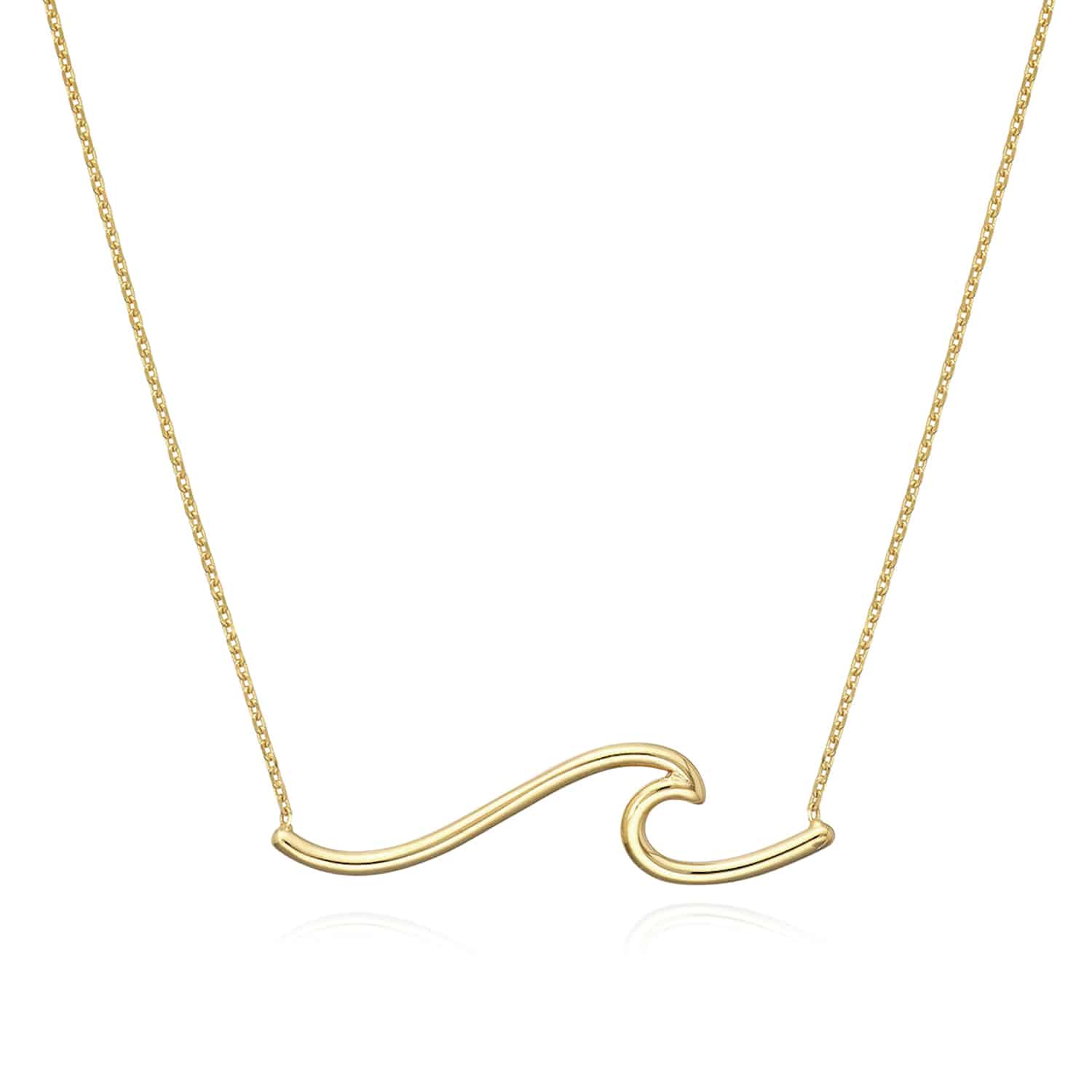 14K Yellow Gold White Wave Symbol Necklace 16"-18" AdjustableCouldn't load pickup availability