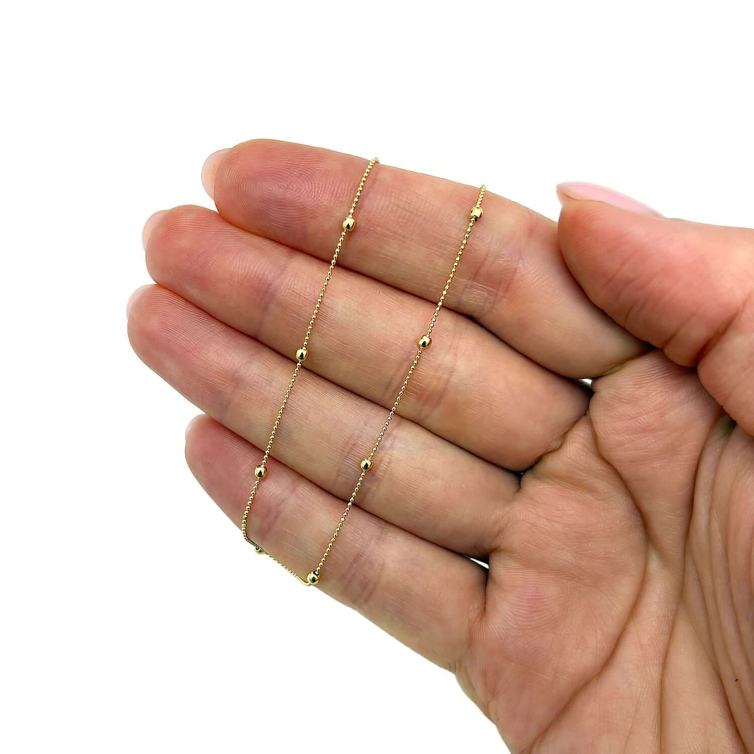 Read full return policy14K Yellow Gold Diamond-Cut Chain Bead Stations Ankle Bracelet (Solid Links) 9"-10" Adjustable