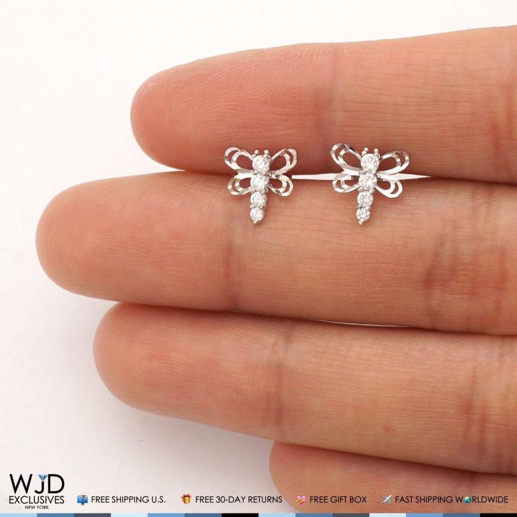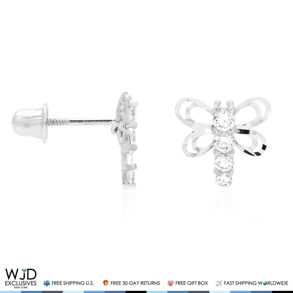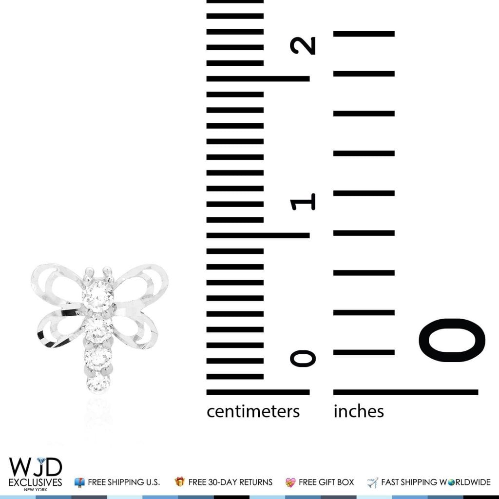 14K White Gold Diamond-Cut CZ Dragonfly Screwback Stud EarringsCouldn't load pickup availability