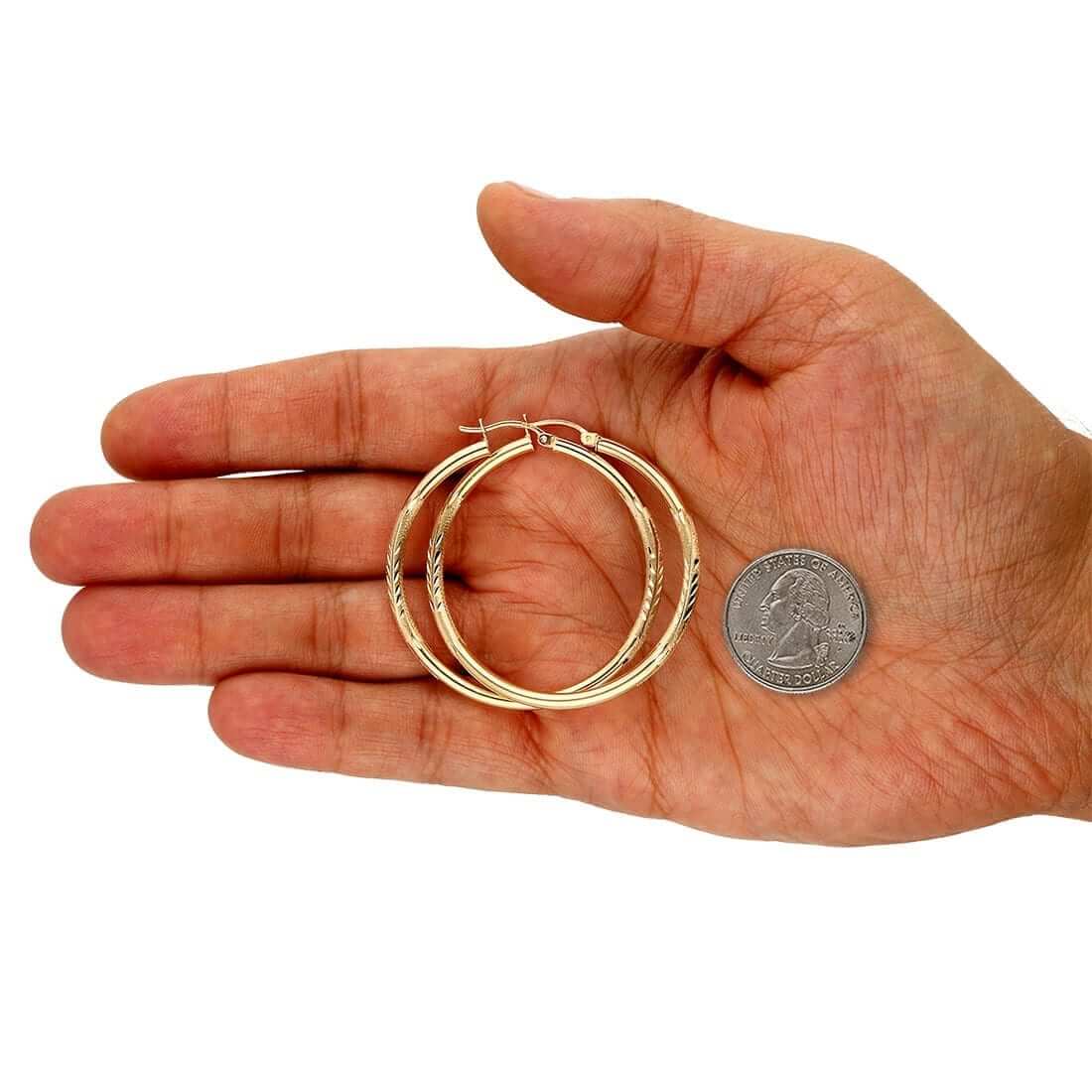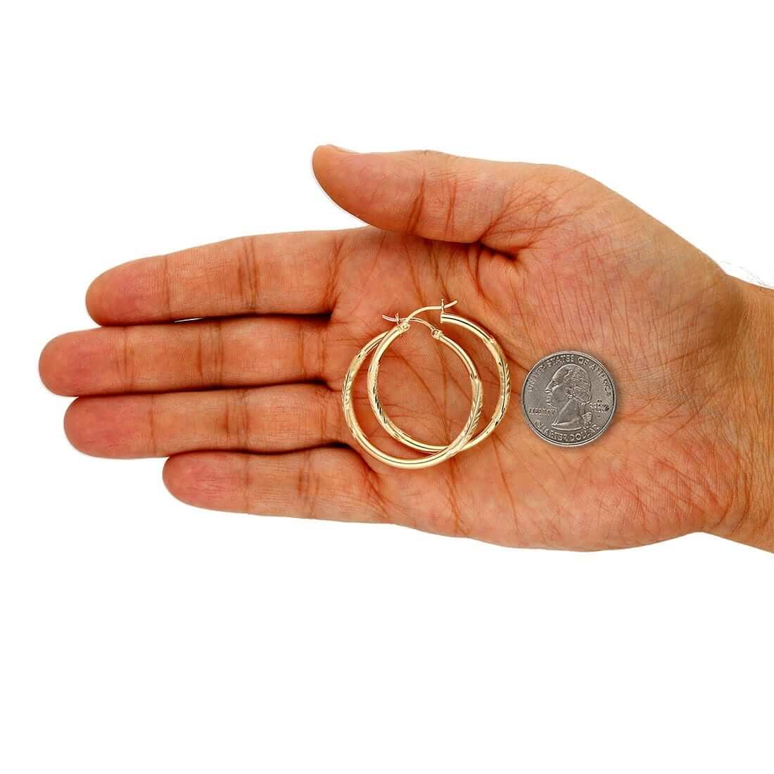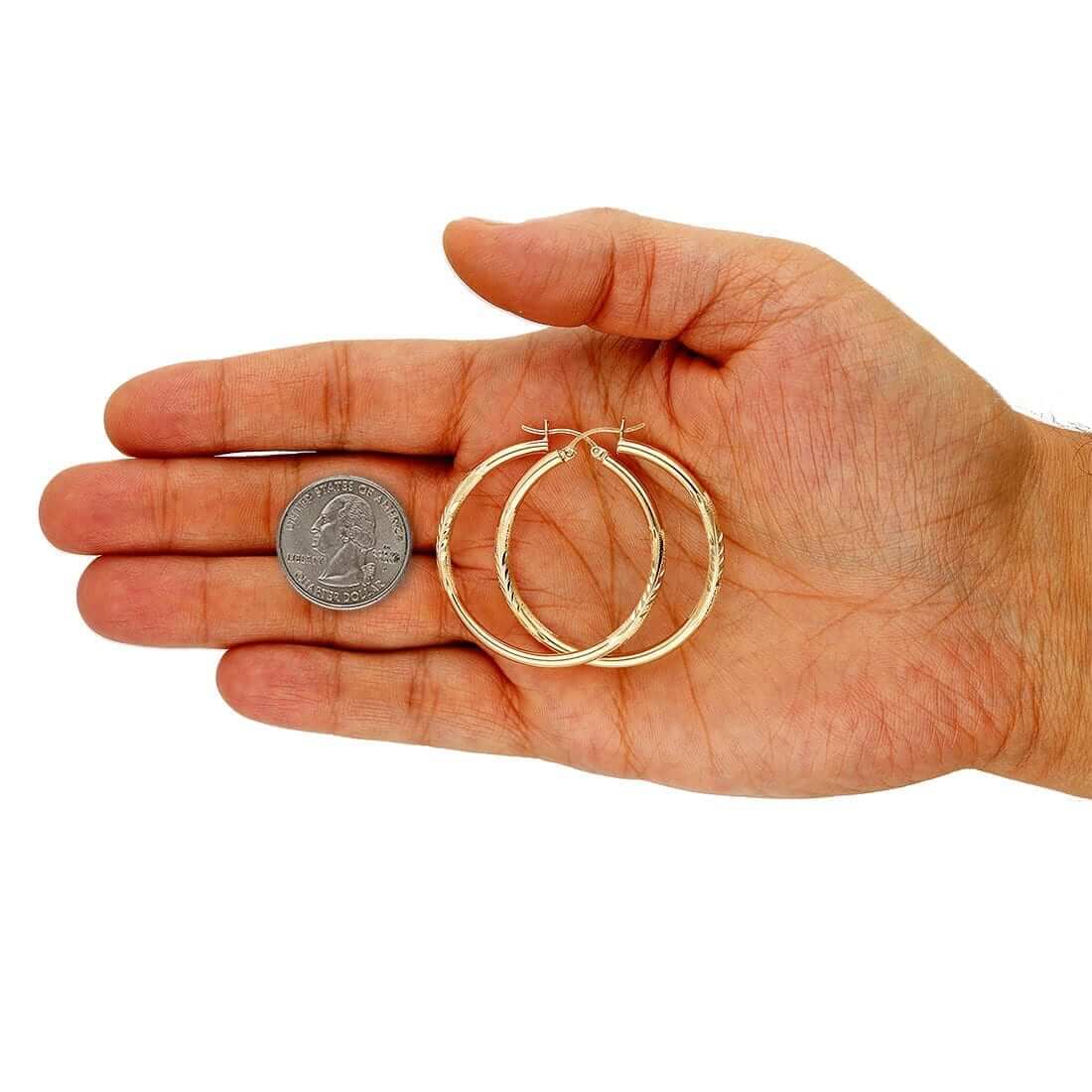 14K Solid Yellow & White Gold 3mm Diamond-Cut Finish Hoop Earrings 19-75mmCouldn't load pickup availability