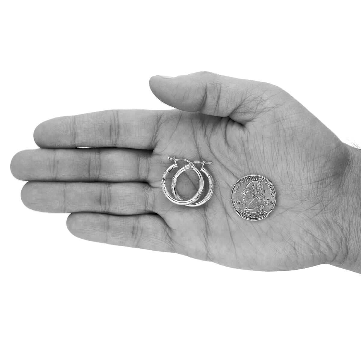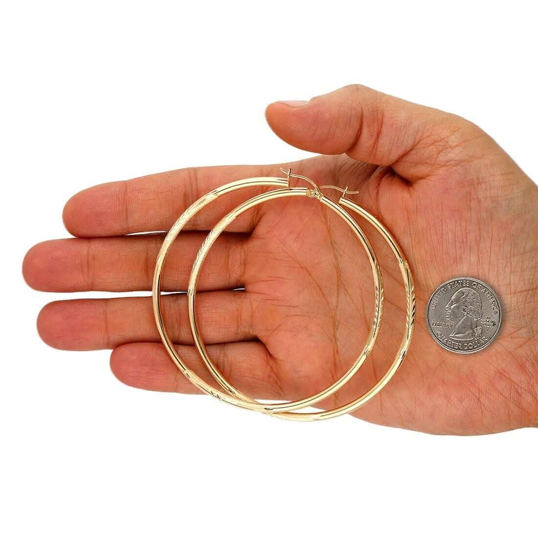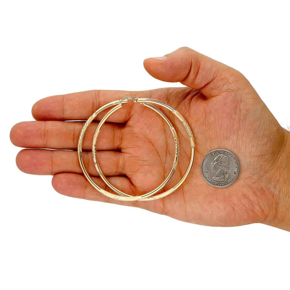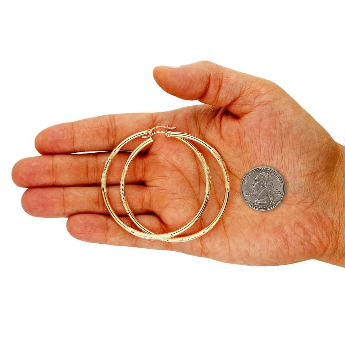 14K Solid Yellow & White Gold 3mm Diamond-Cut Finish Hoop Earrings 19-75mmCouldn't load pickup availability