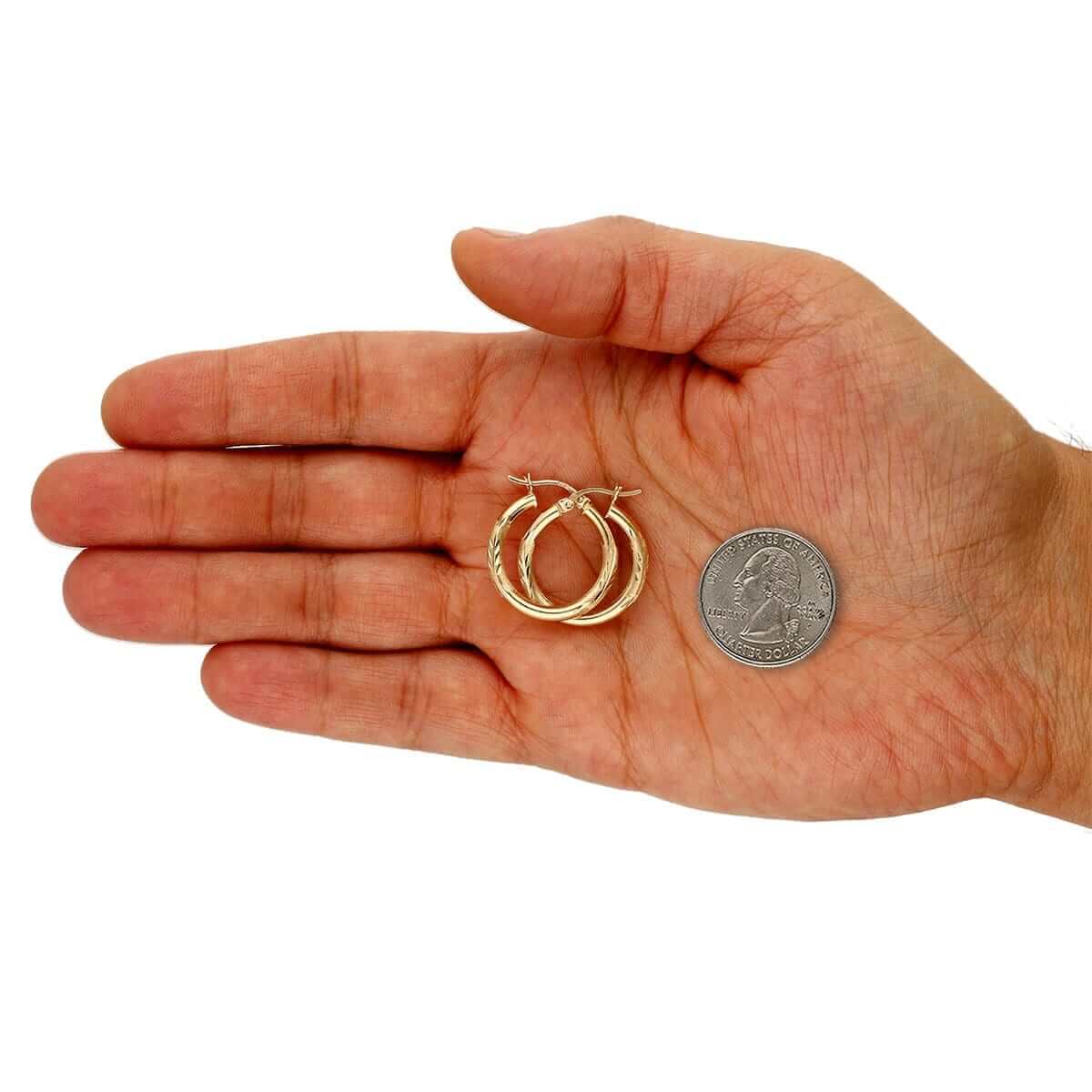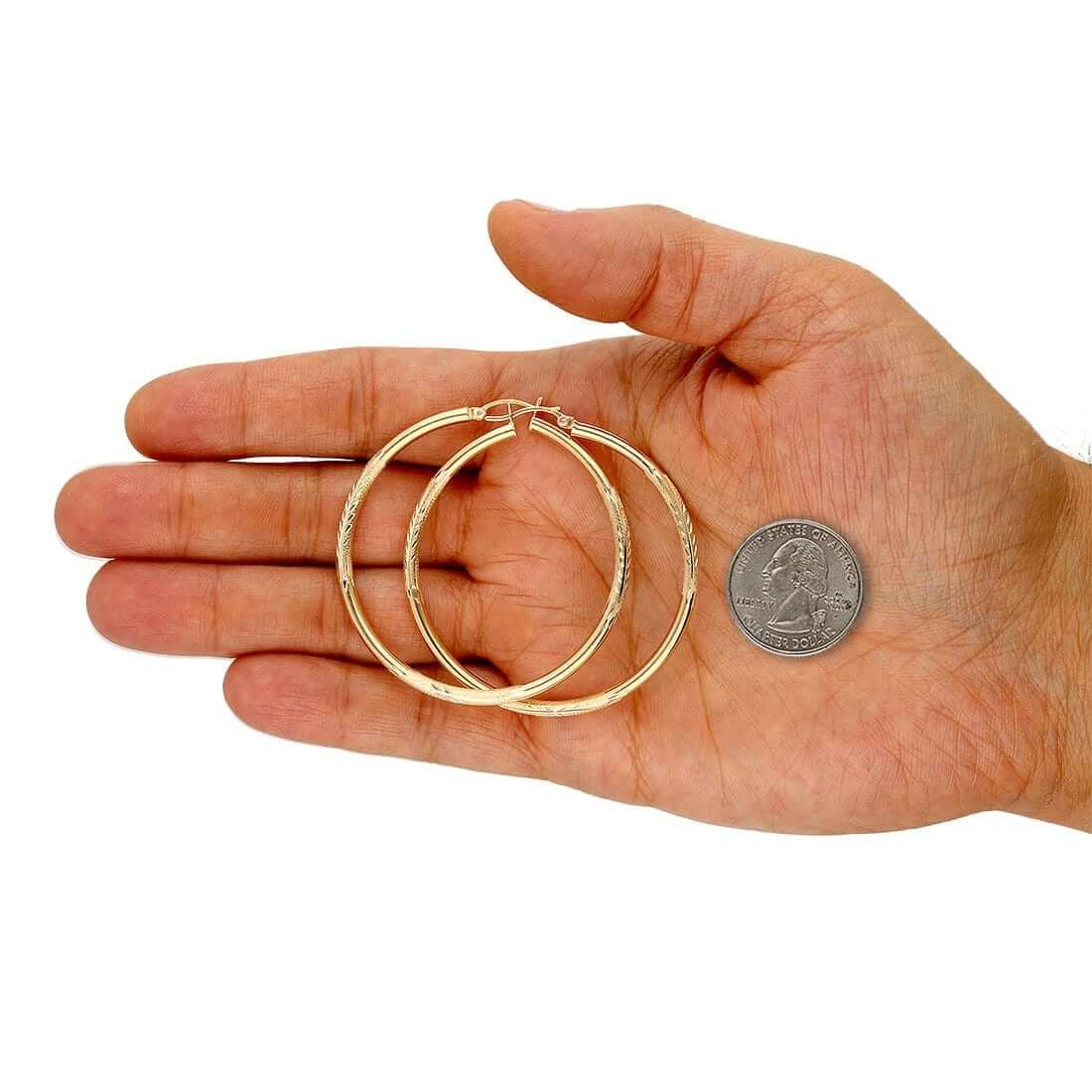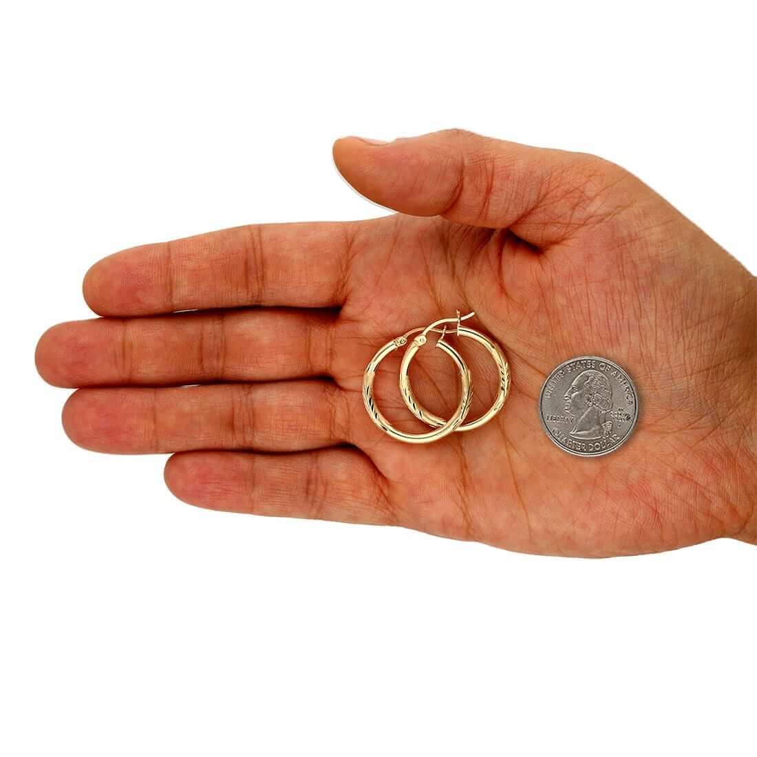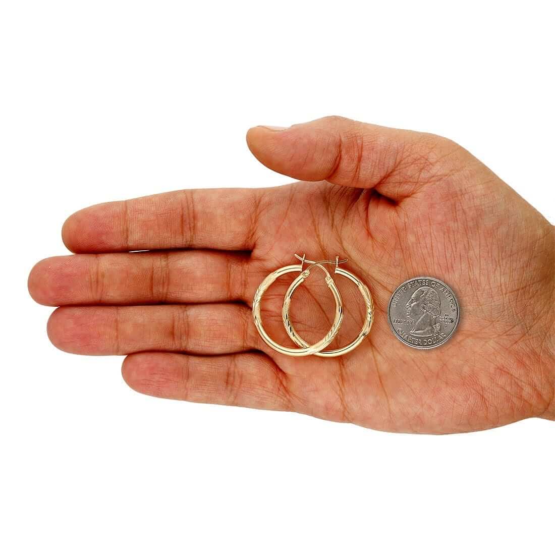 Read full return policy14K Solid Yellow & White Gold 3mm Diamond-Cut Finish Hoop Earrings 19-75mm