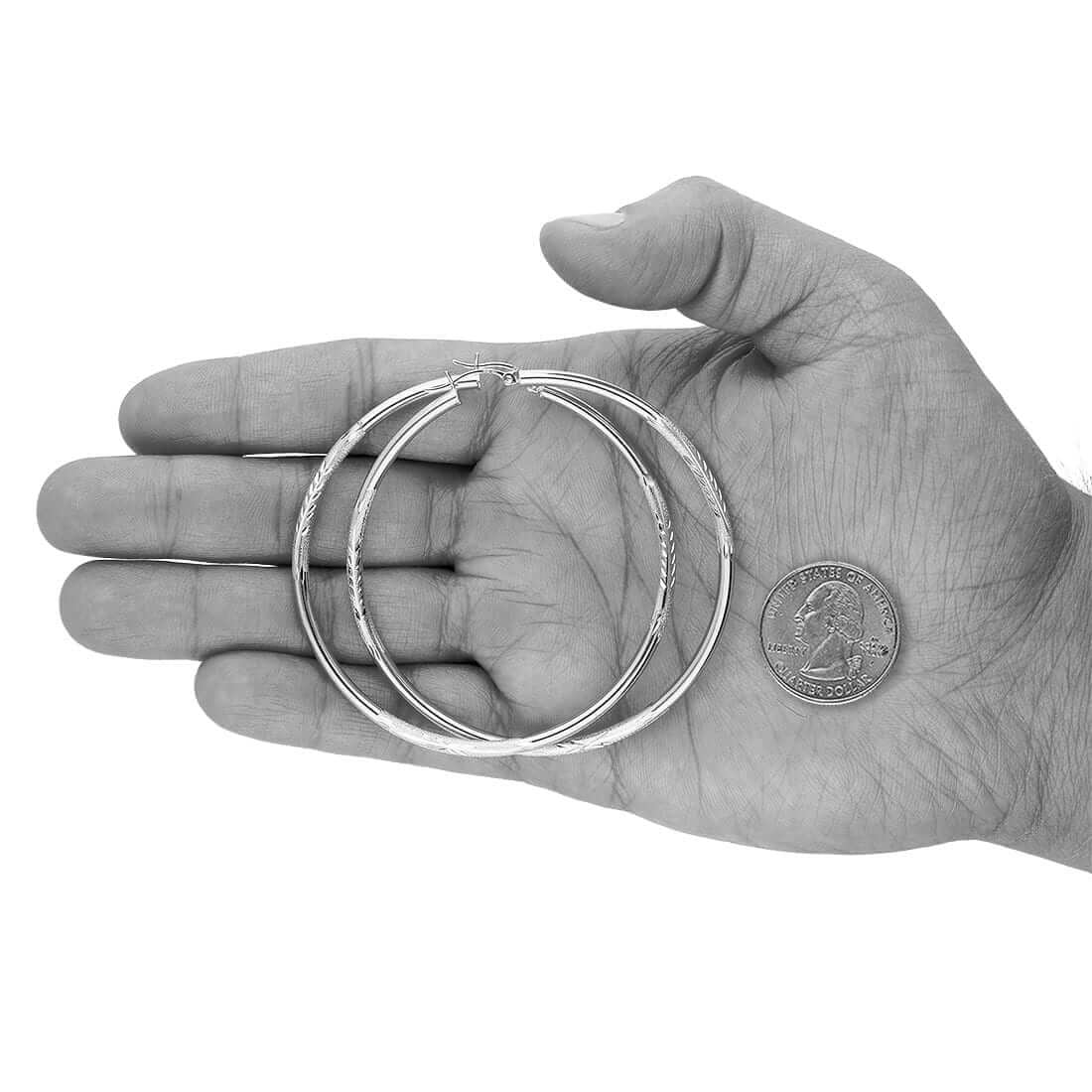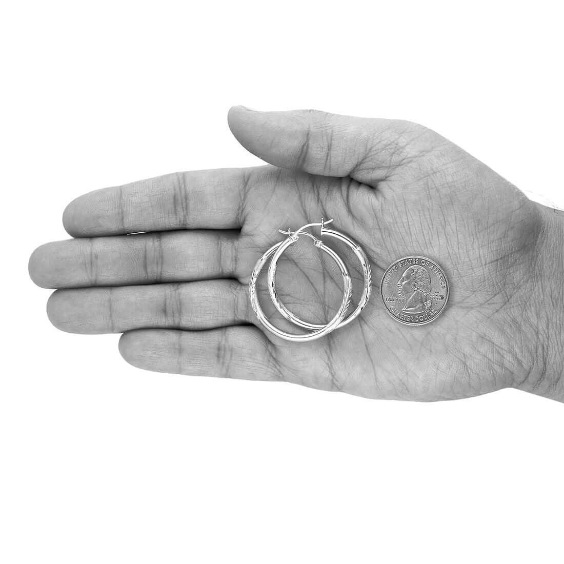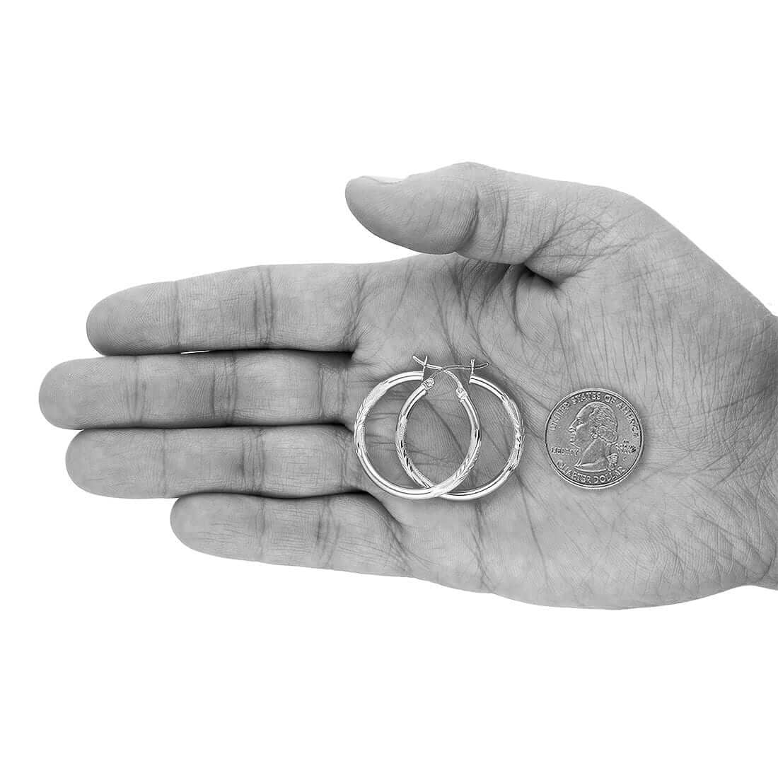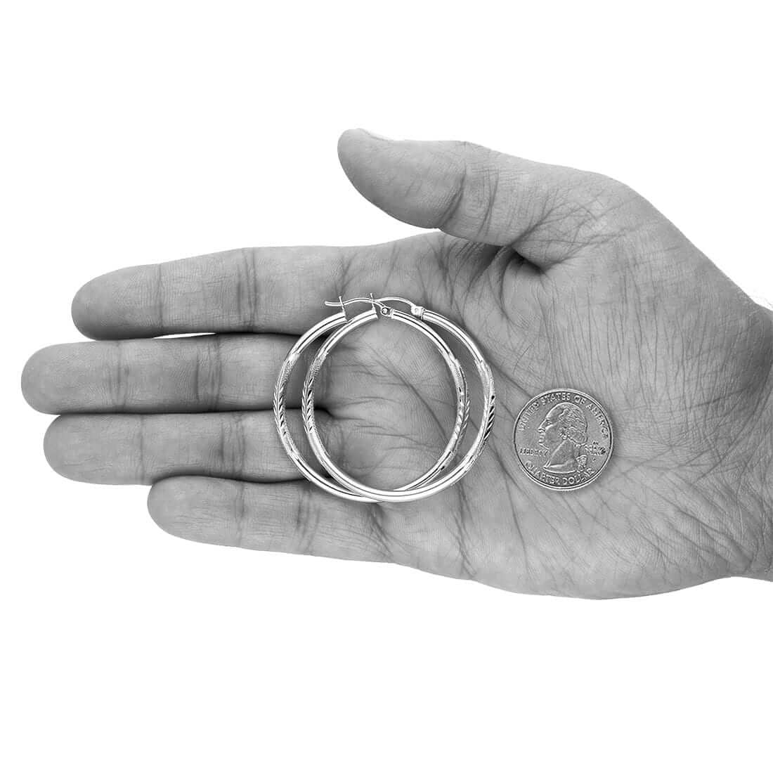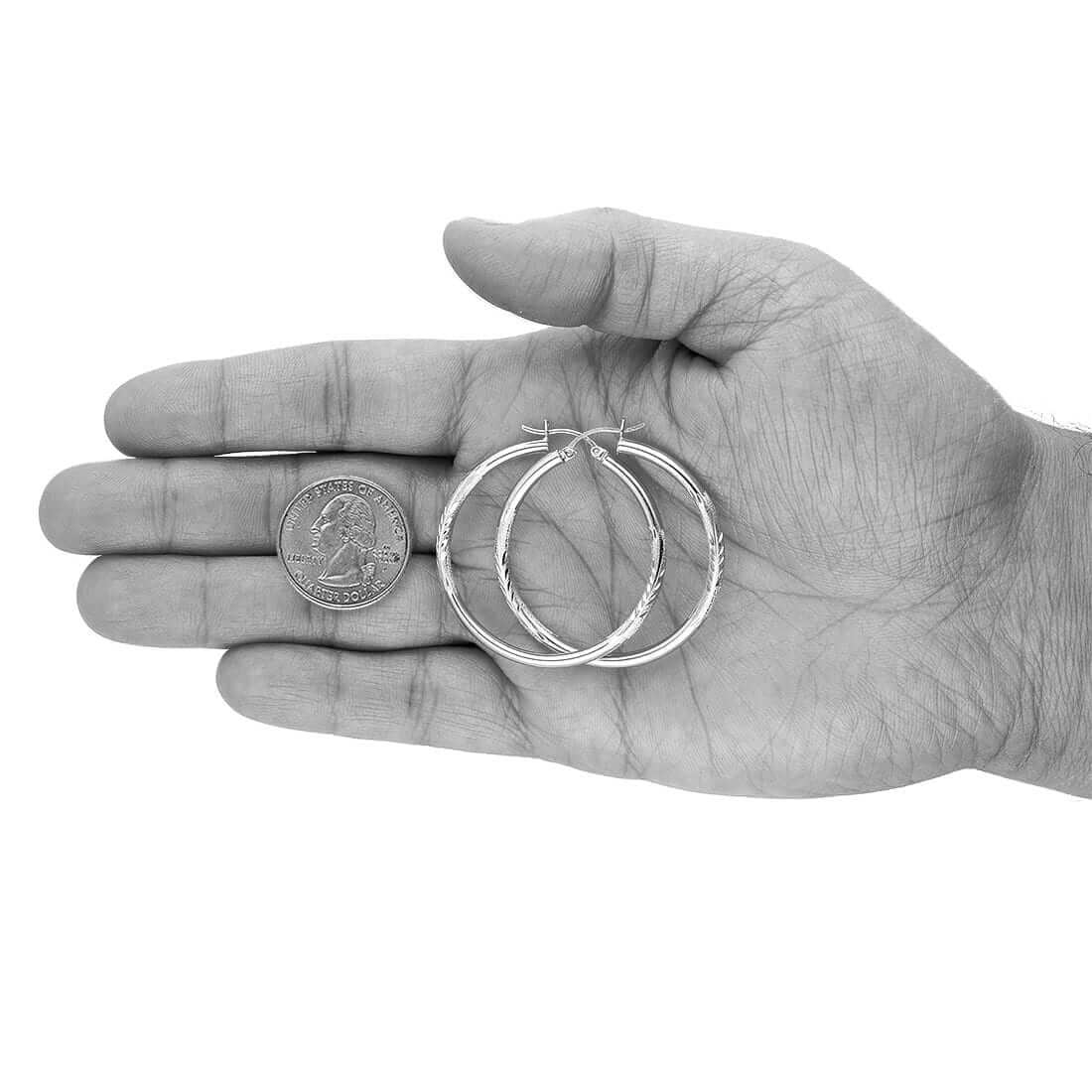 Read full return policy14K Solid Yellow & White Gold 3mm Diamond-Cut Finish Hoop Earrings 19-75mm