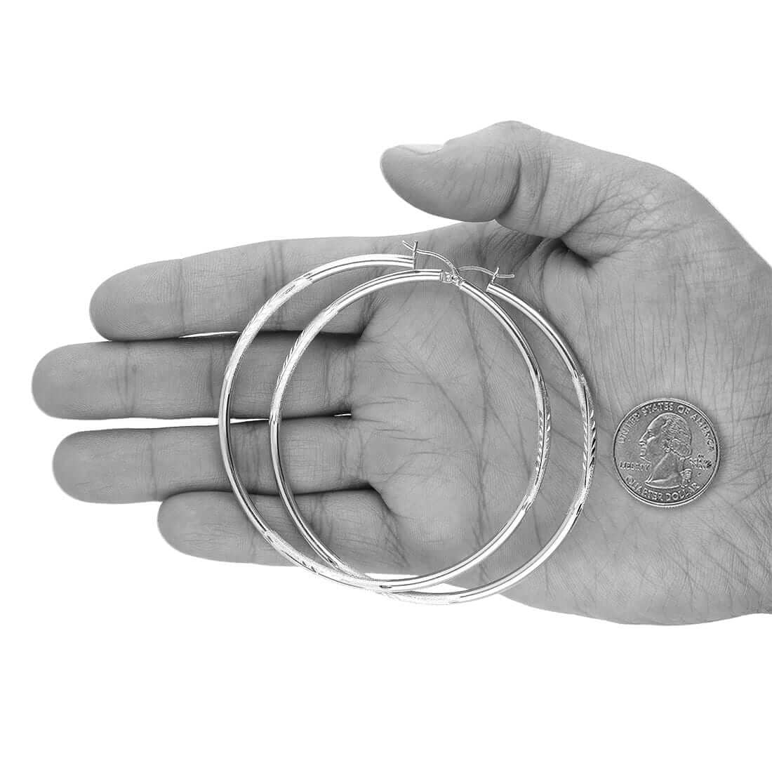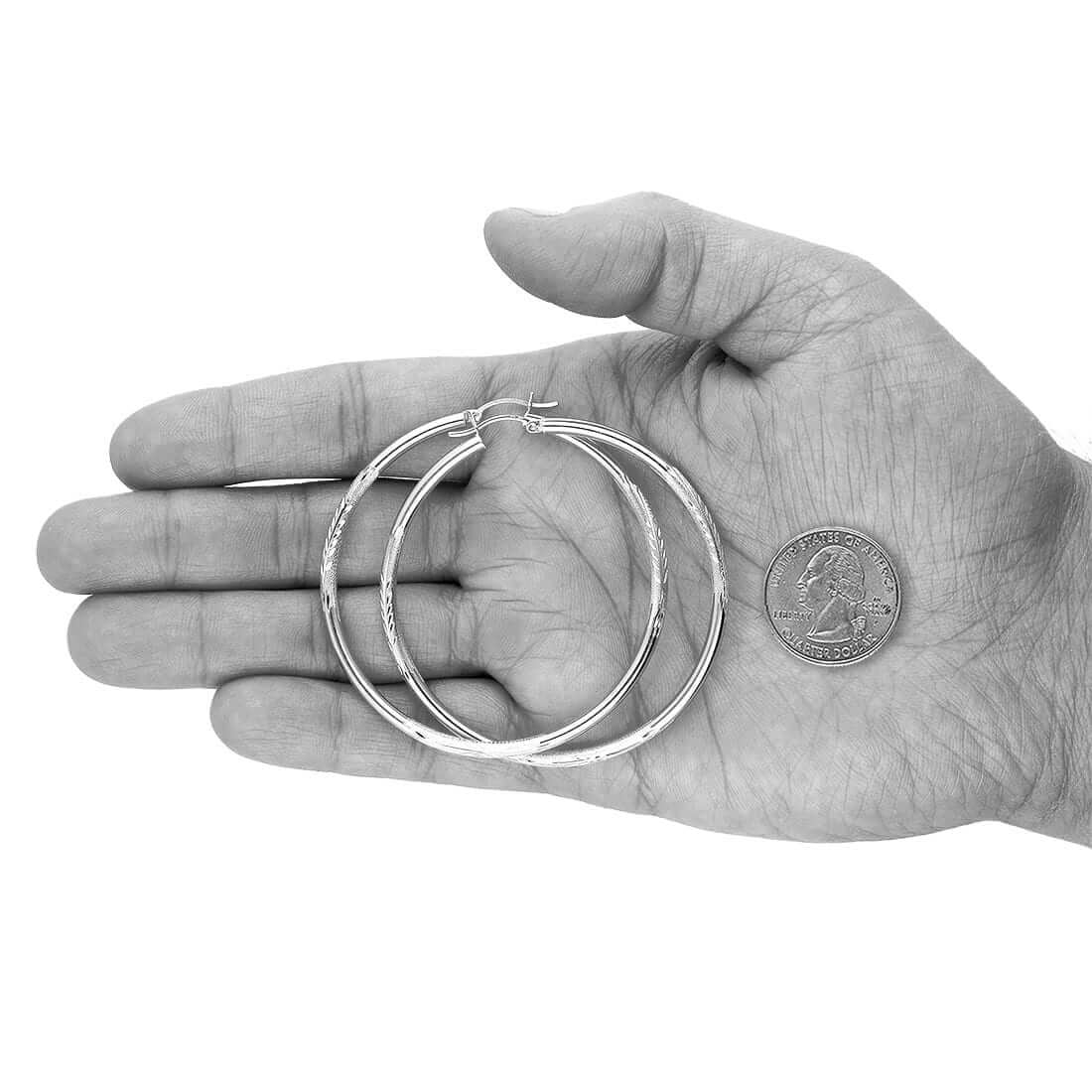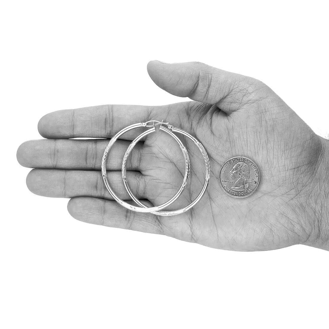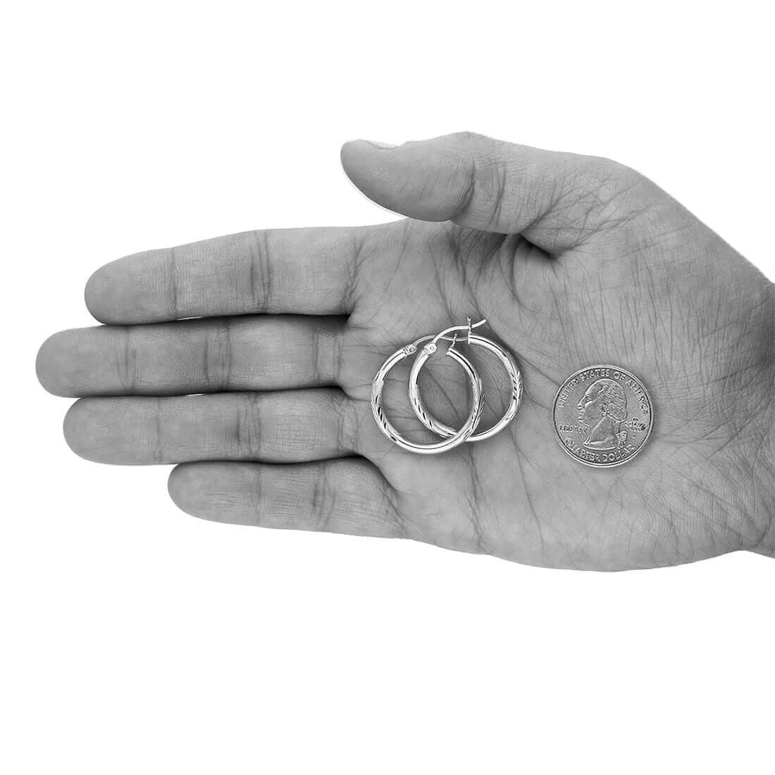 Read full return policy14K Solid Yellow & White Gold 3mm Diamond-Cut Finish Hoop Earrings 19-75mm