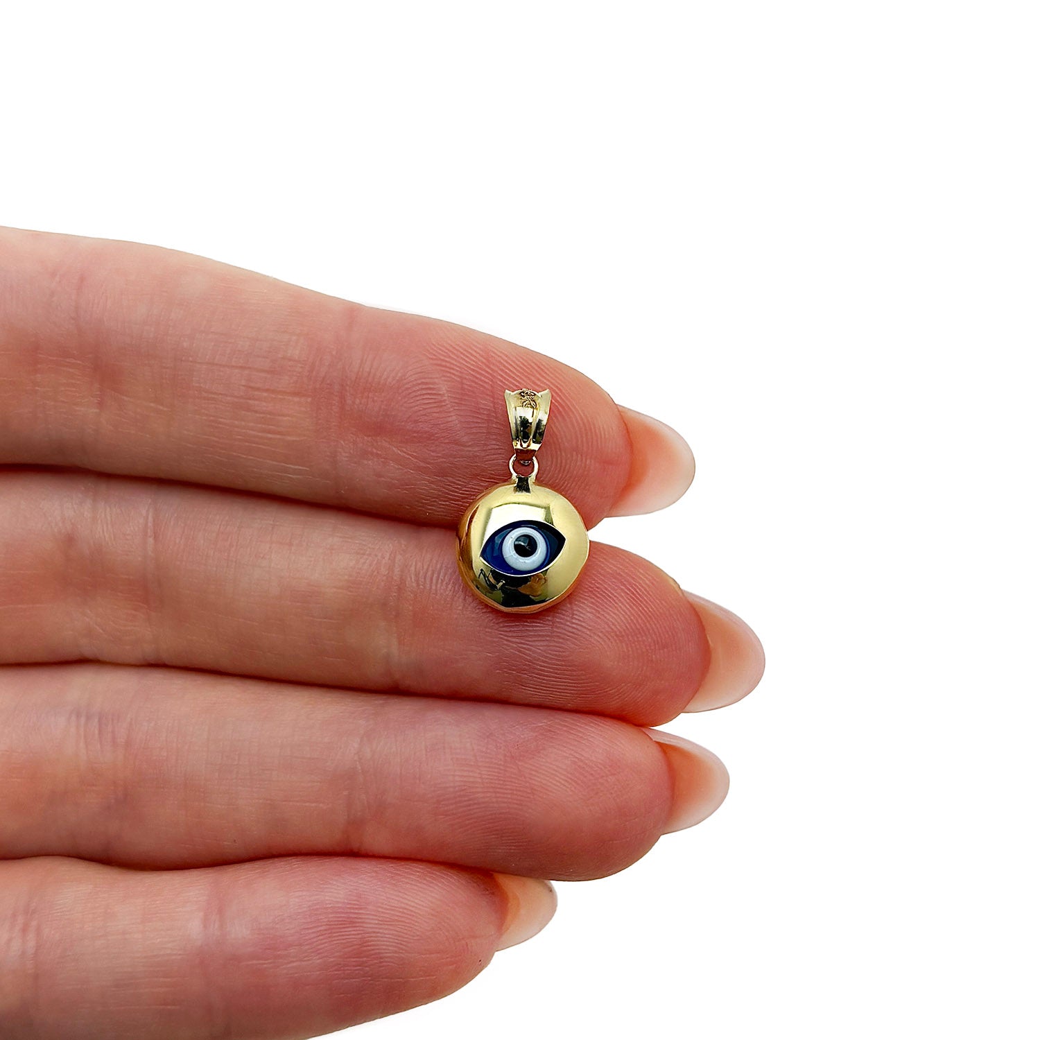 14K Yellow Gold Good Luck Evil Eye Pendant 0.7"Couldn't load pickup availability