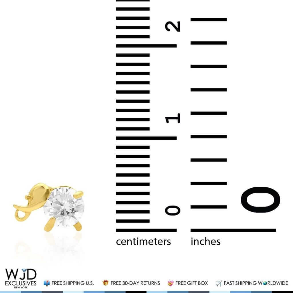 Read full return policy14K Yellow Gold Round White Zircon Elephant Baby Screwback Stud Earrings