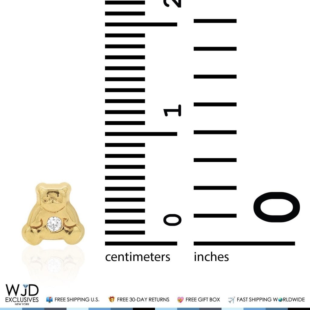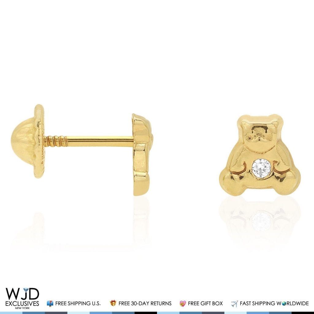 14K Yellow Gold White Zircon Teddy Bear Baby Screwback Stud Kid EarringsCouldn't load pickup availability