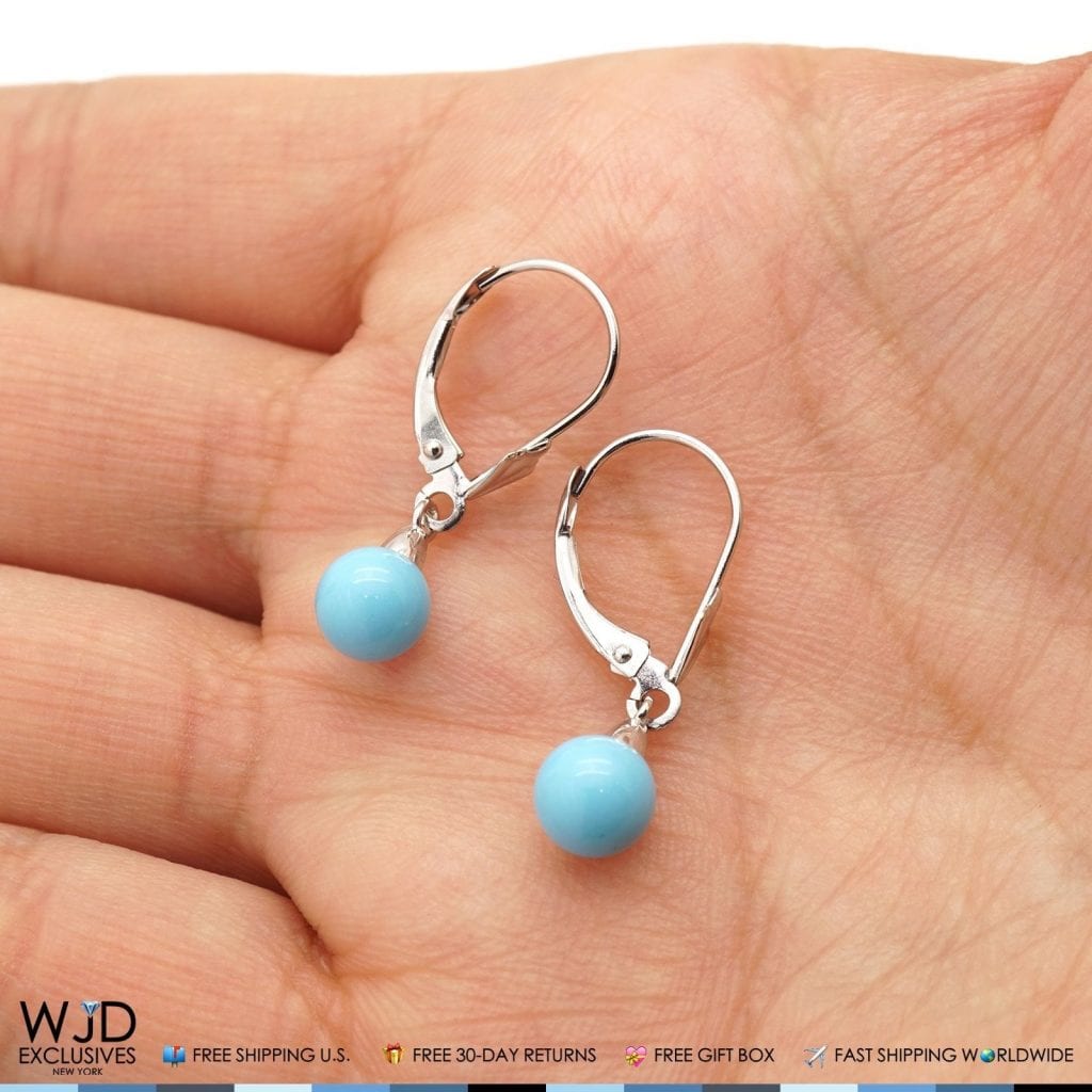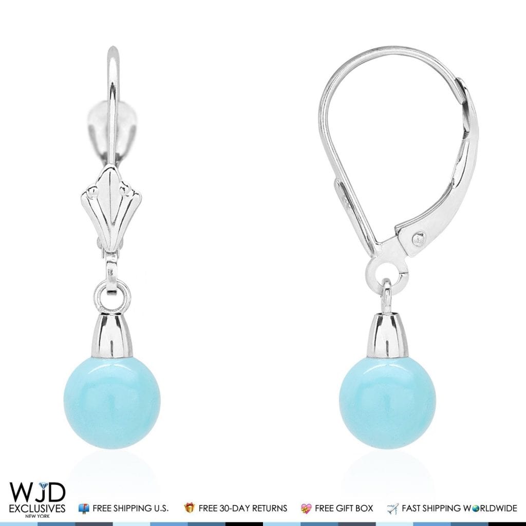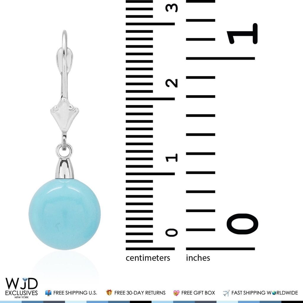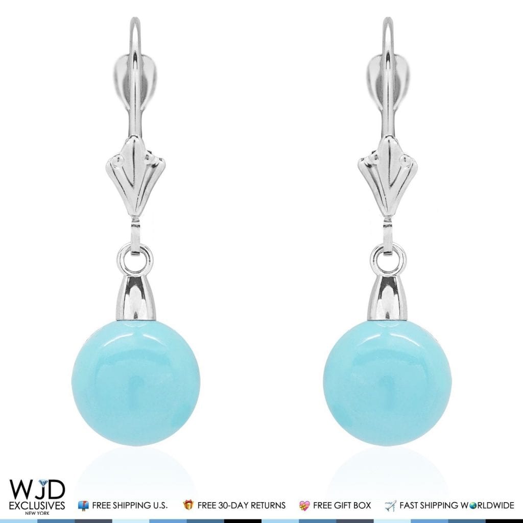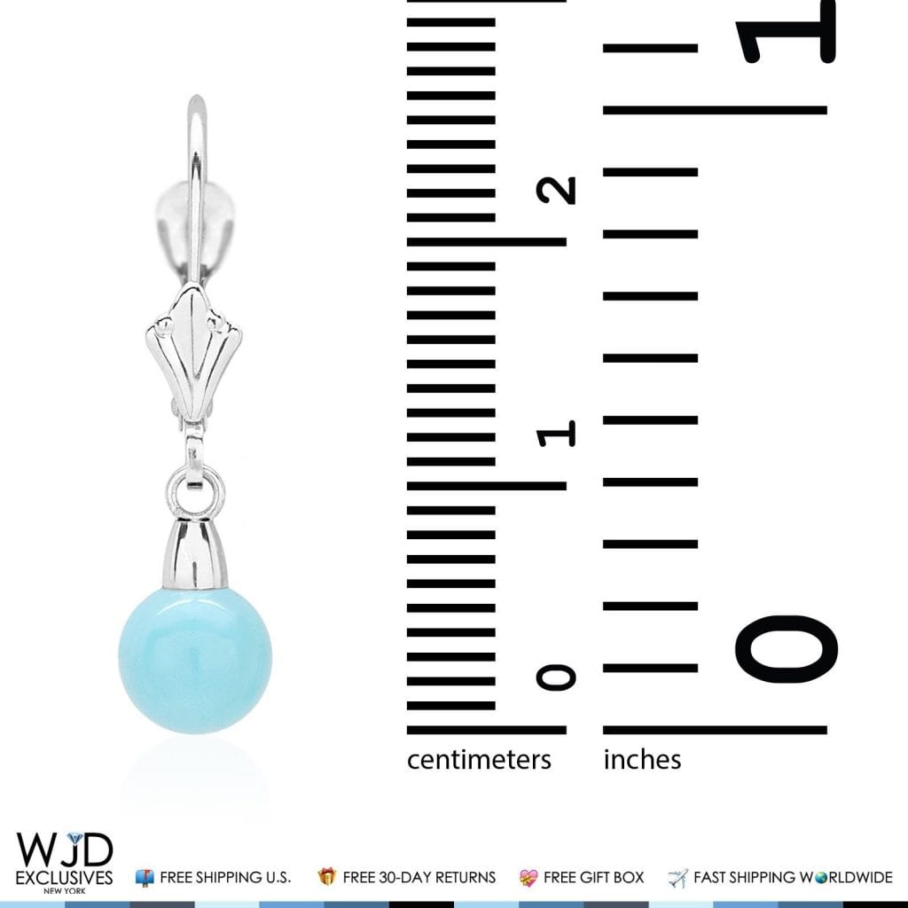 14K White Gold Ball Shaped Turquoise Leverback Dangle Earrings 6mm-10mmCouldn't load pickup availability