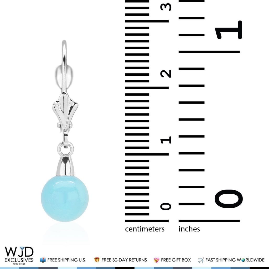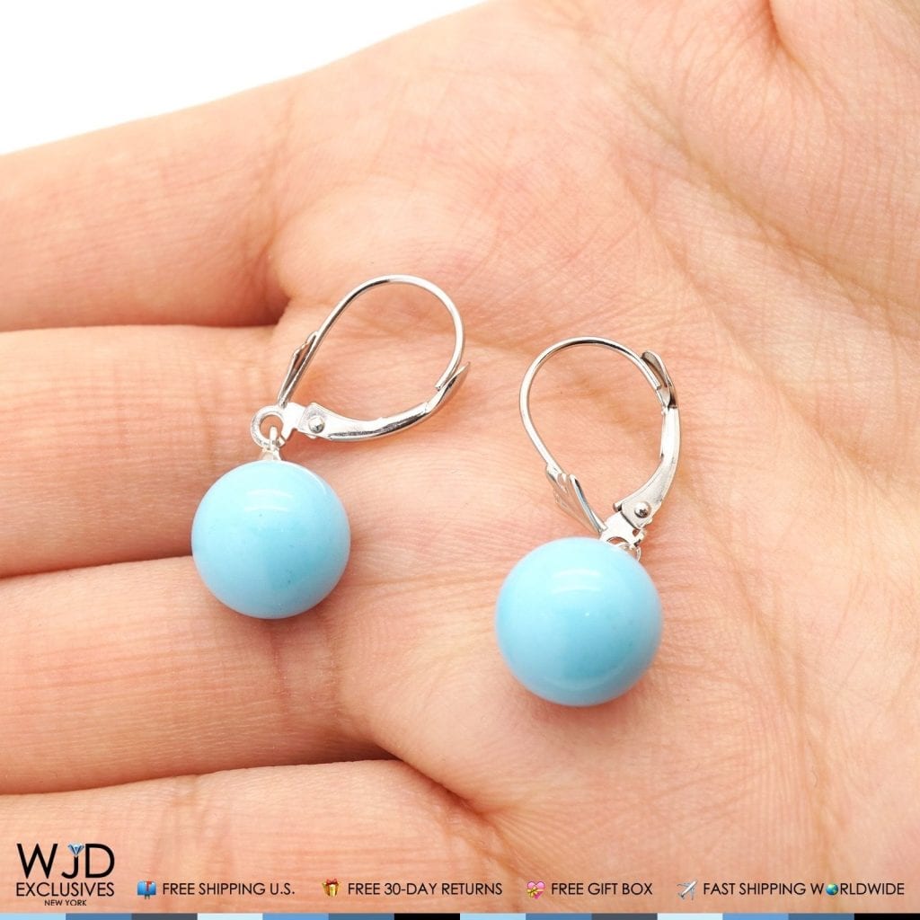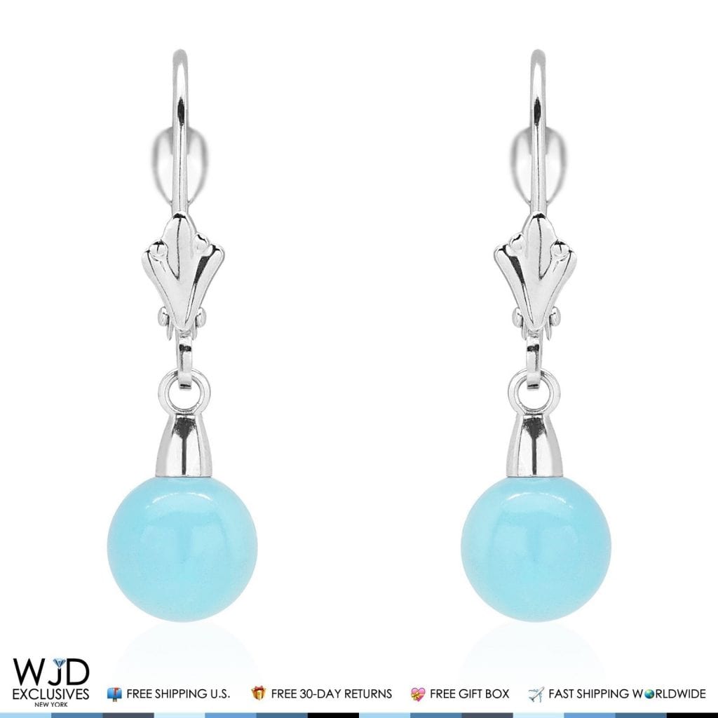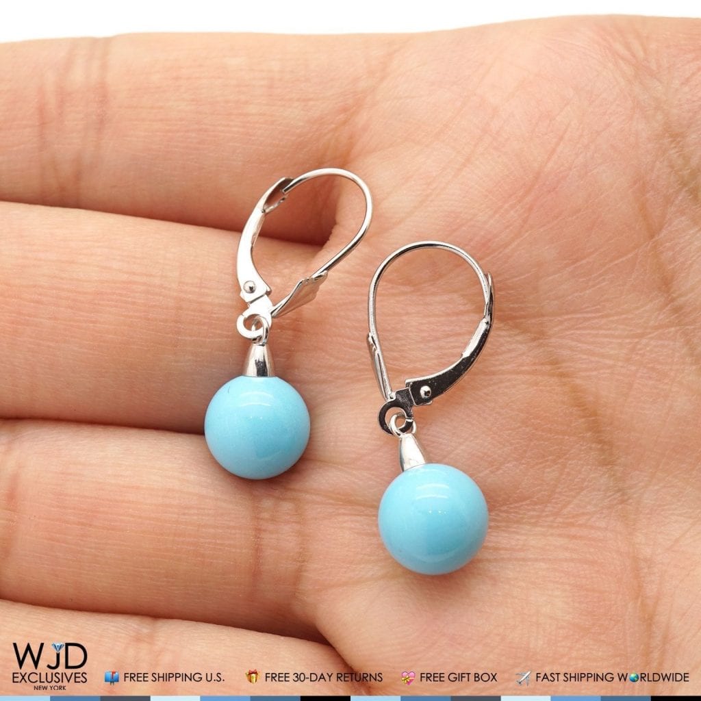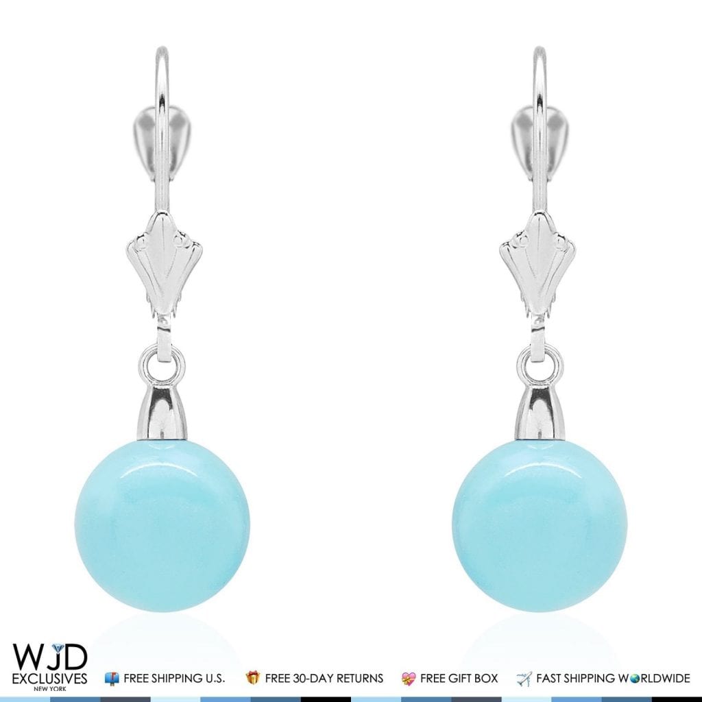 14K White Gold Ball Shaped Turquoise Leverback Dangle Earrings 6mm-10mmCouldn't load pickup availability