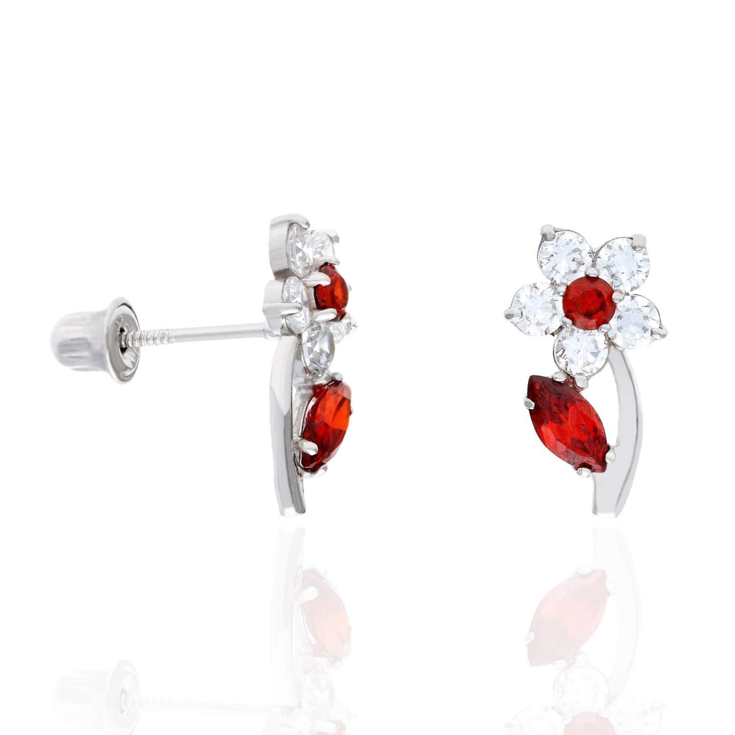Read full return policy14K White Gold Color Birthstone Flower Plant Screw Back Kids Stud Earrings