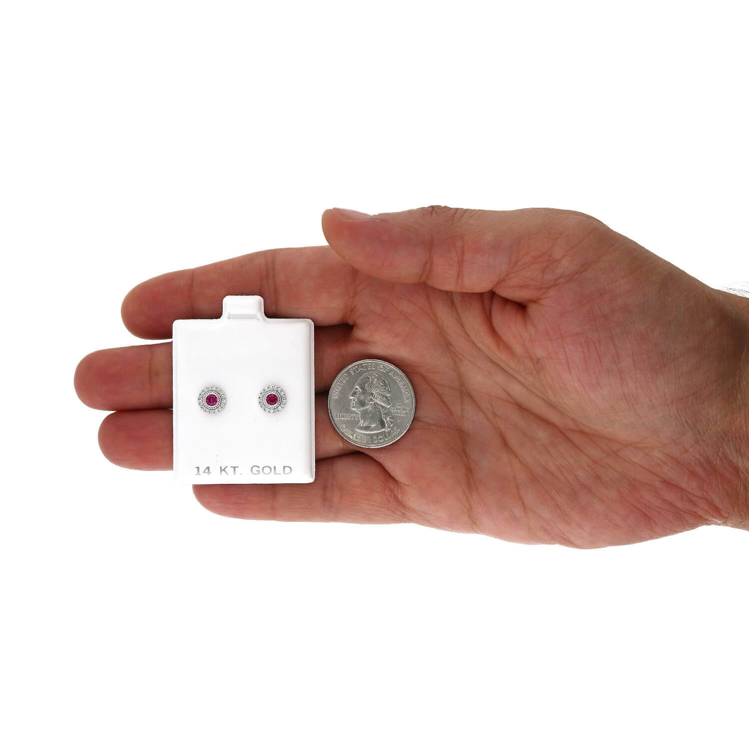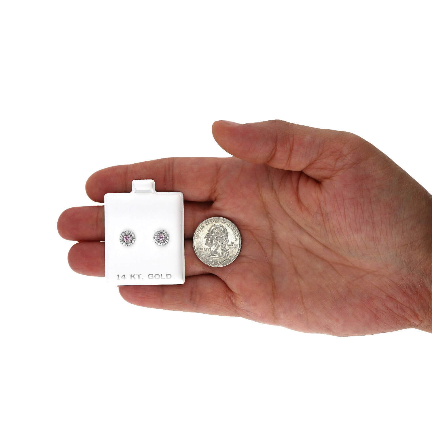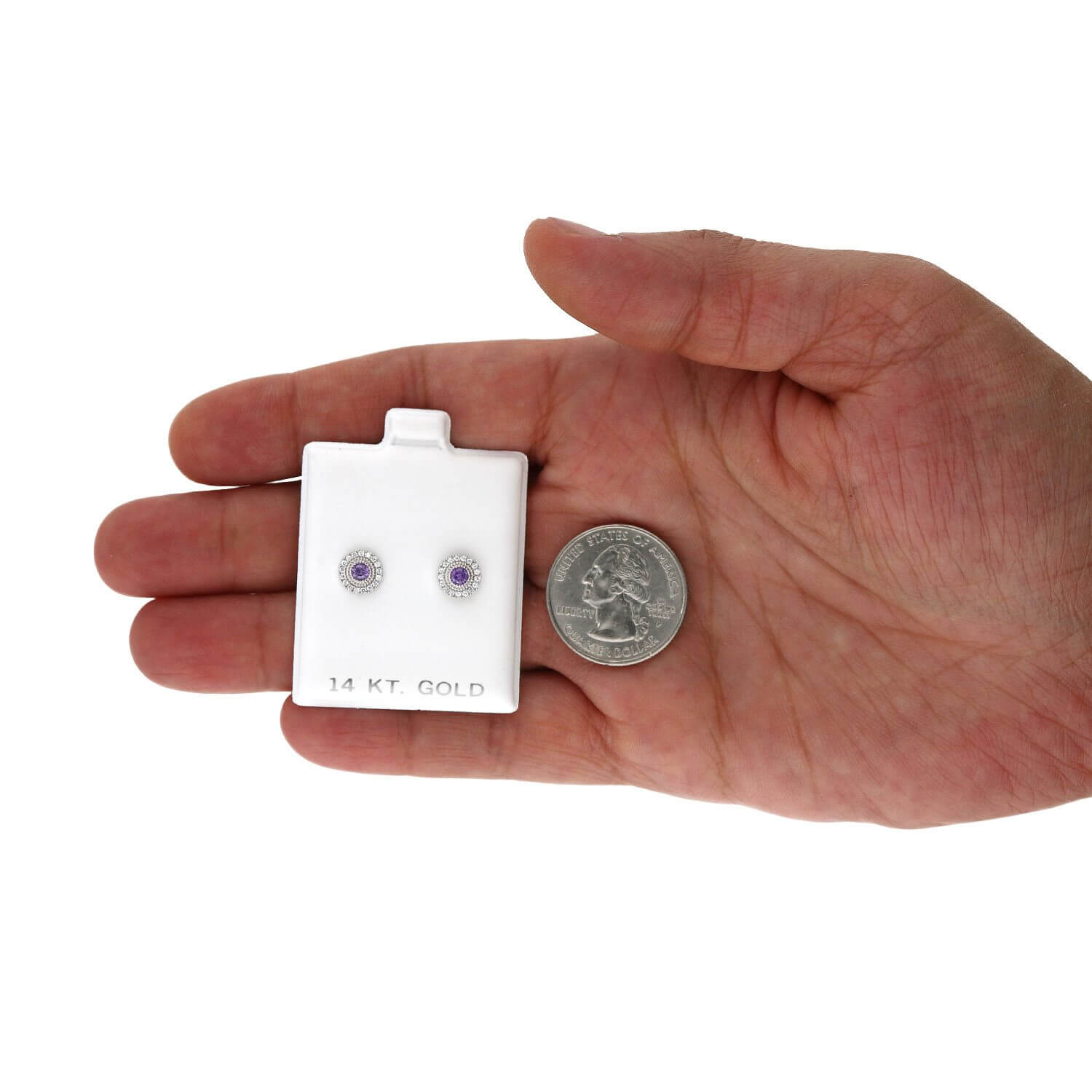 14K White Gold Color Gemstone Round Halo Fancy Birthstone Screw Stud EarringsCouldn't load pickup availability