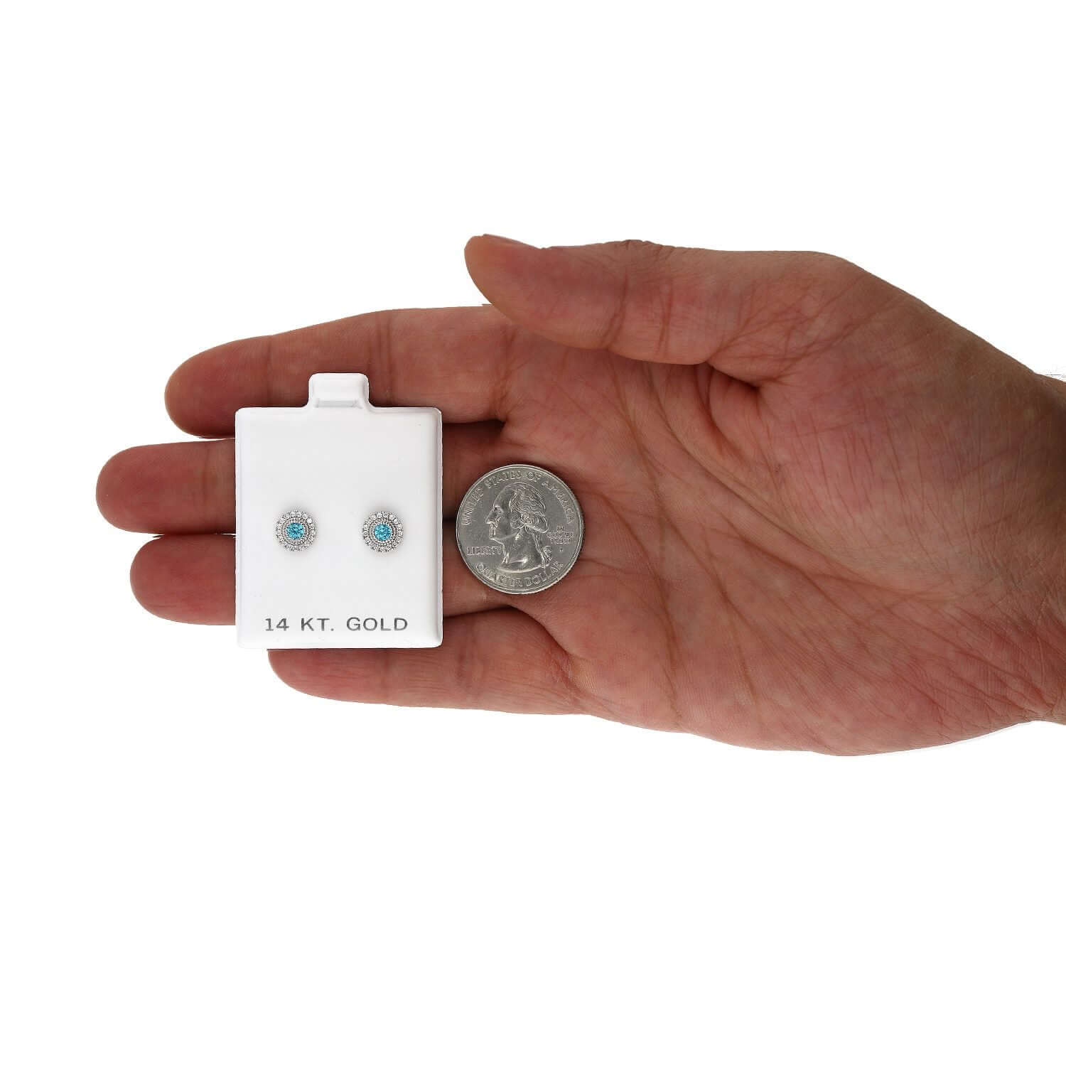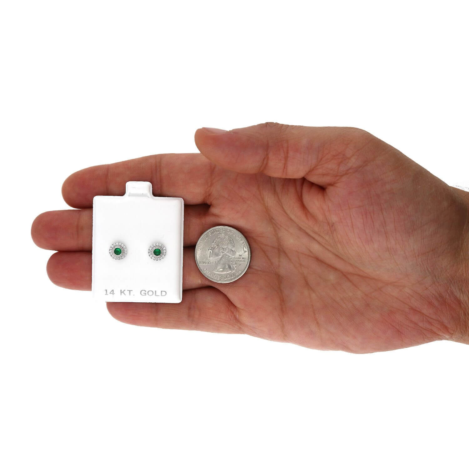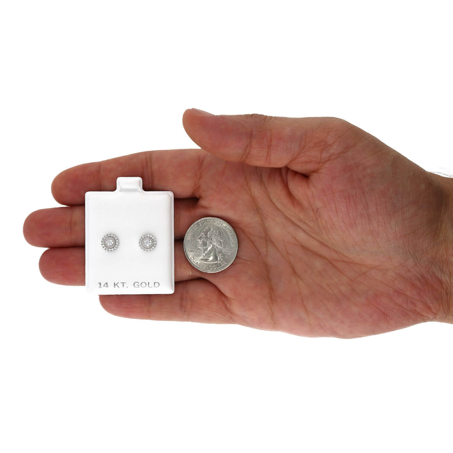 14K White Gold Color Gemstone Round Halo Fancy Birthstone Screw Stud EarringsCouldn't load pickup availability