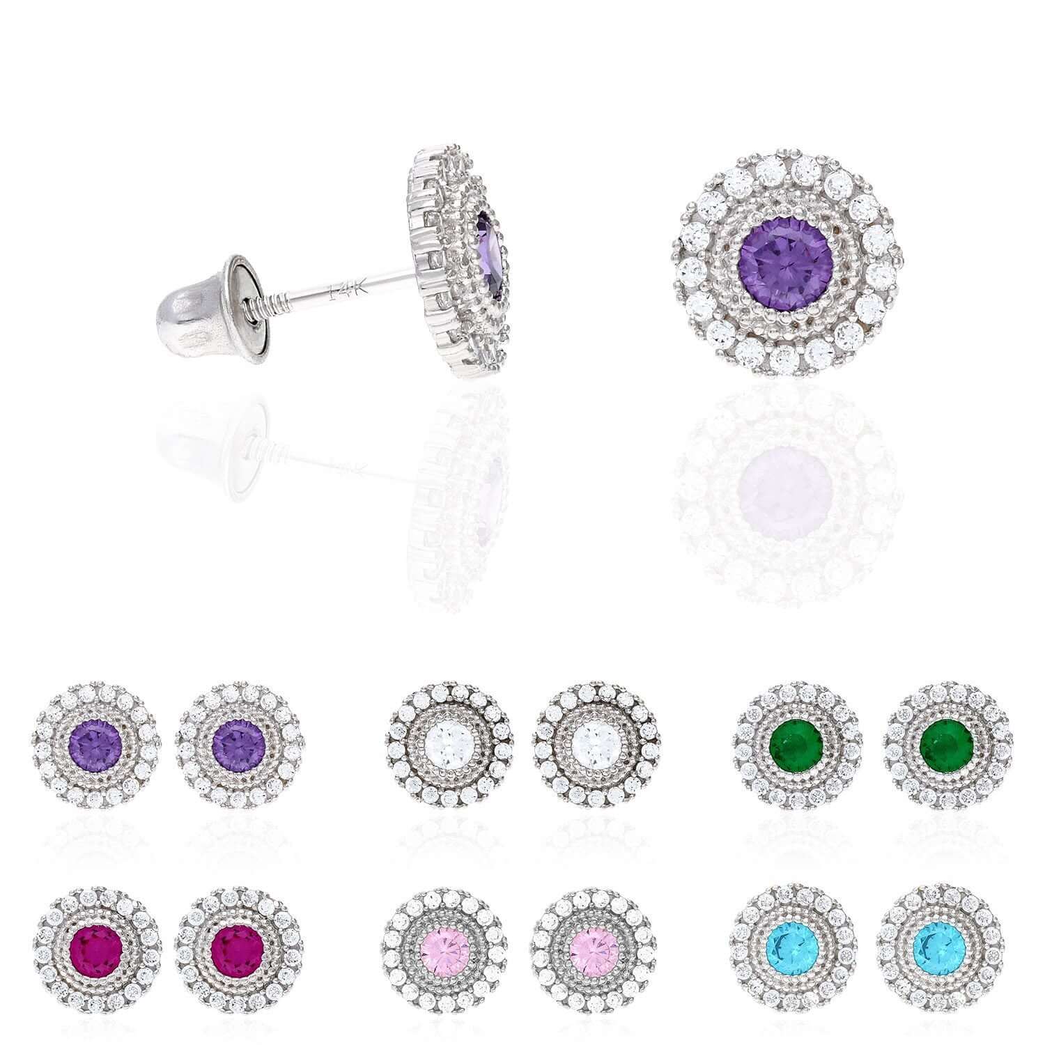 Read full return policy14K White Gold Color Gemstone Round Halo Fancy Birthstone Screw Stud Earrings