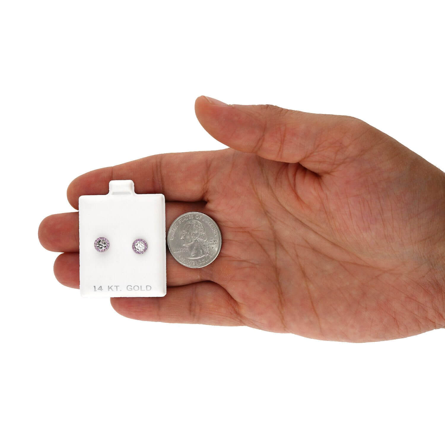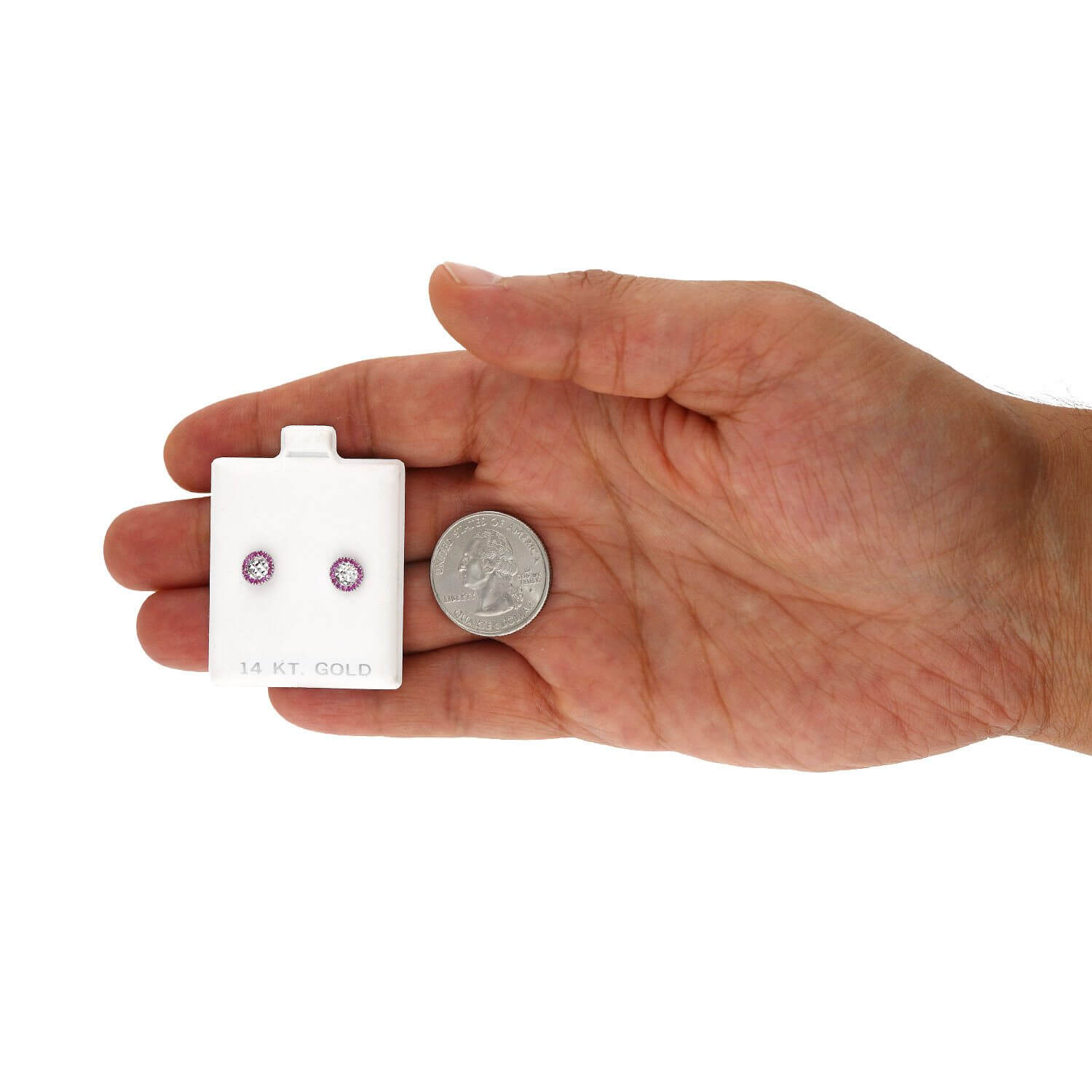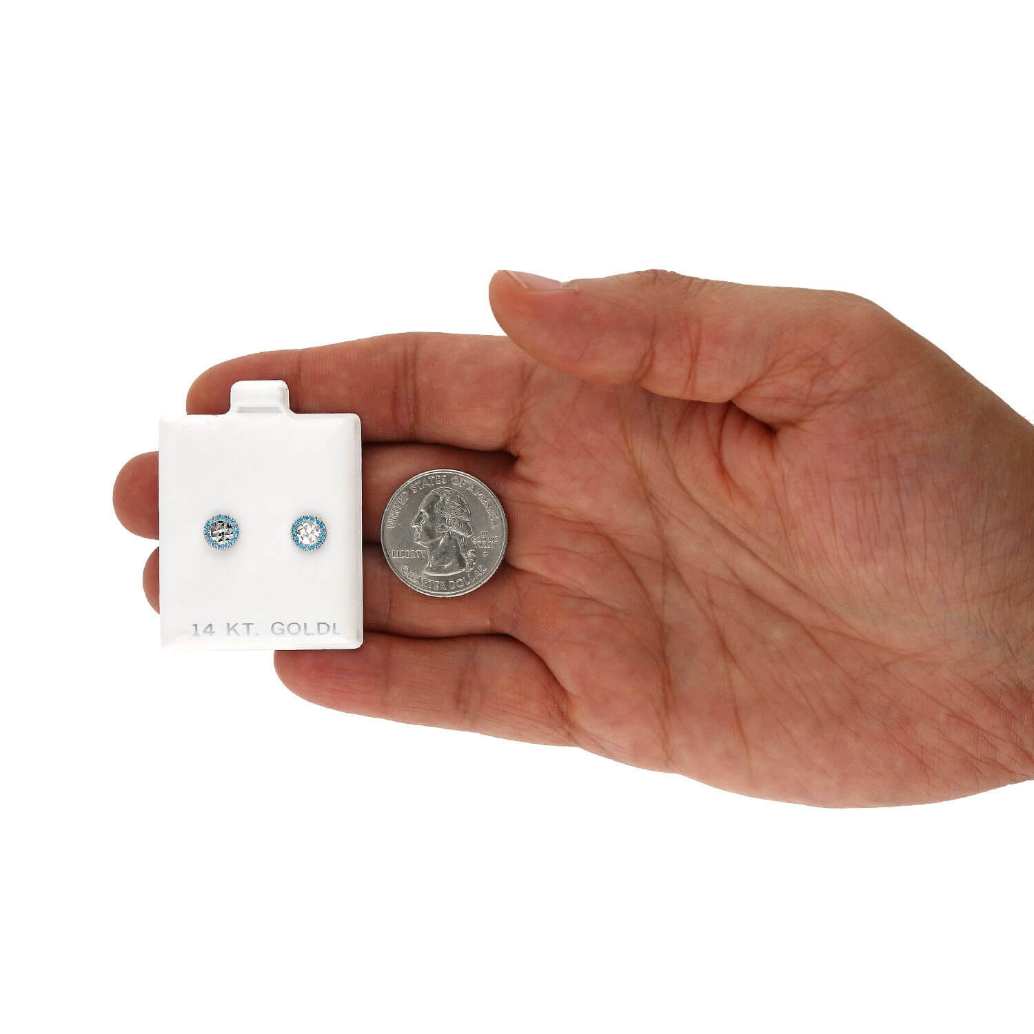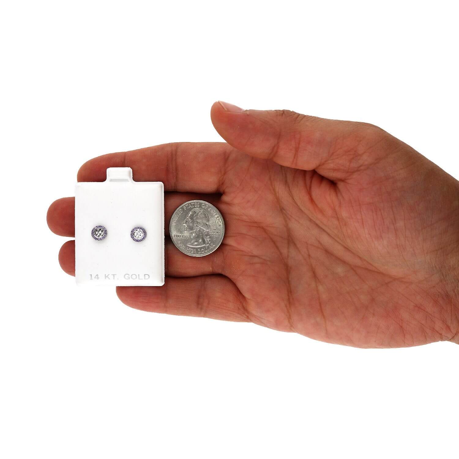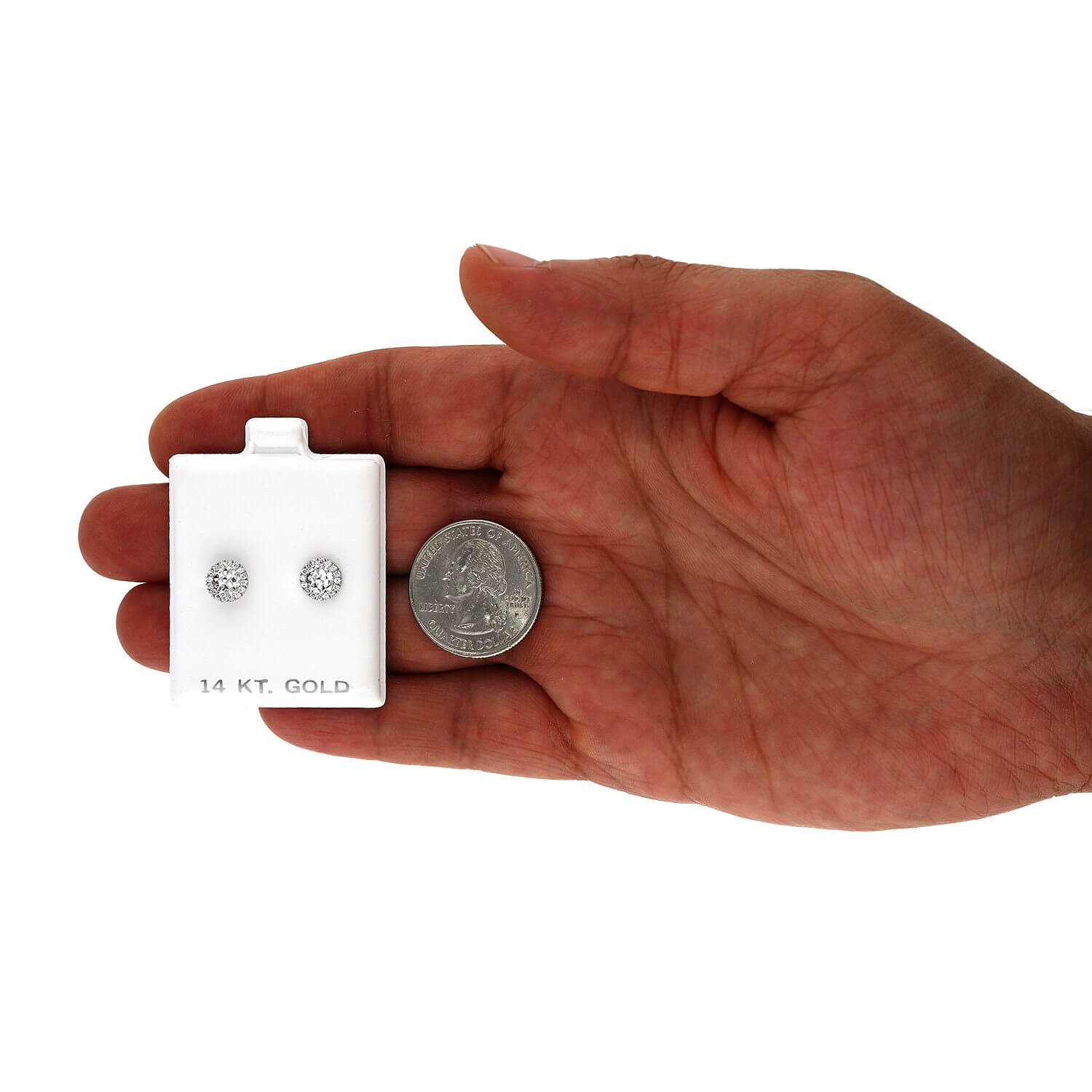 14K White Gold Diamond-Cut Gemstone Round Halo 7mm Screw Back Stud EarringsCouldn't load pickup availability